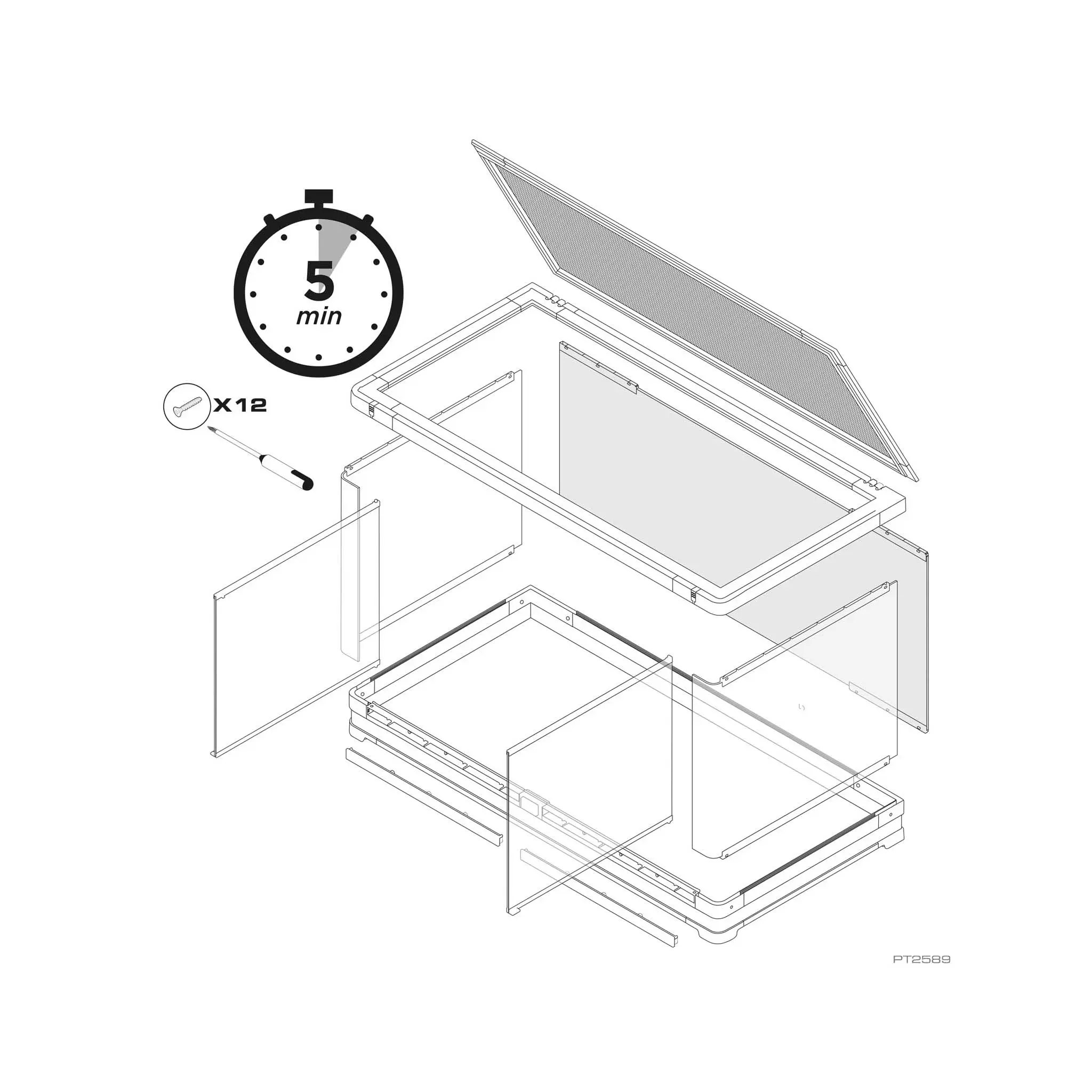 Zamykane drzwi oraz uchylna, blokowana pokrywa z siatki skutecznie chronią przed ucieczką nawet bardzo ruchliwych gatunków.