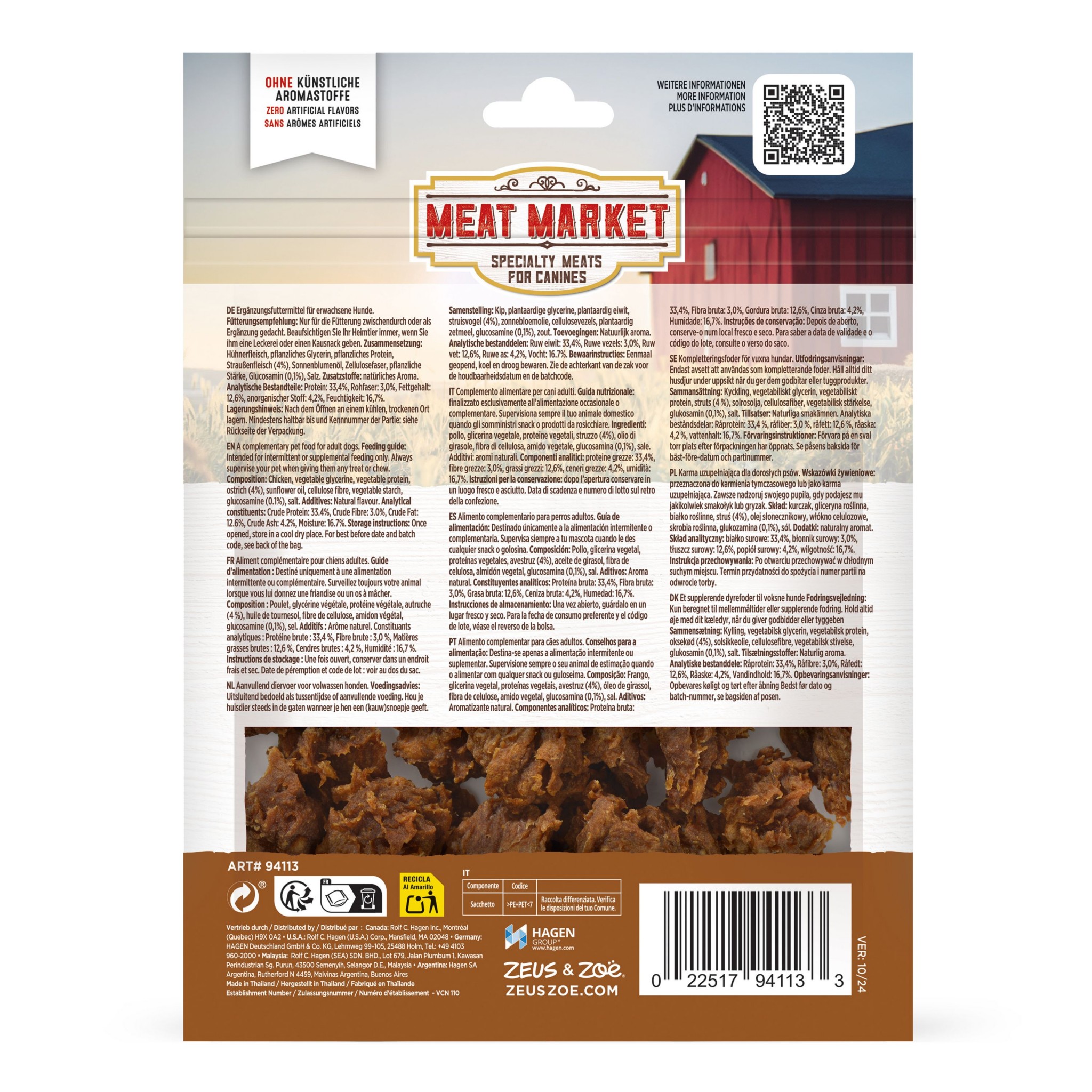 Zoe Meat Market, dla psa, kąski z mięsem strusia, 100g, saszetka
