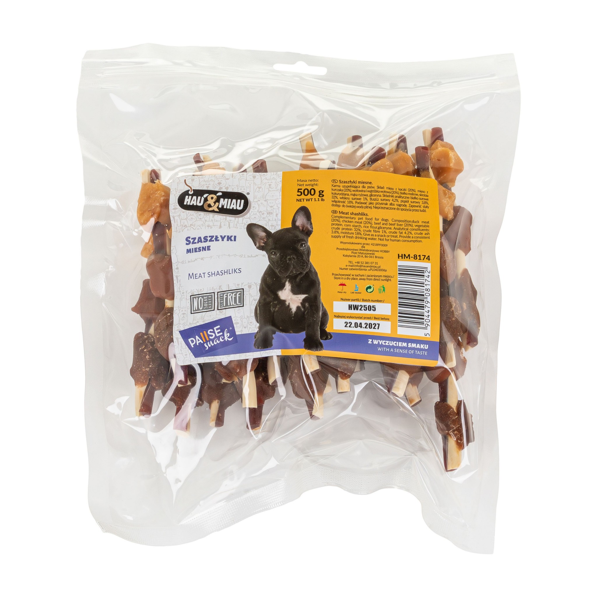 Opakowanie zawiera 500 g szaszłyków, co zapewnia długotrwałą radość i smakowitą przyjemność dla Twojego czworonoga. Szaszłyki są starannie przygotowane, a ich konsystencja sprawia, że są łatwe do żucia i trawienia przez psa. Ich wyjątkowy kształt szaszłyków dodaje zabawy i interakcji podczas podawania przysmaku.