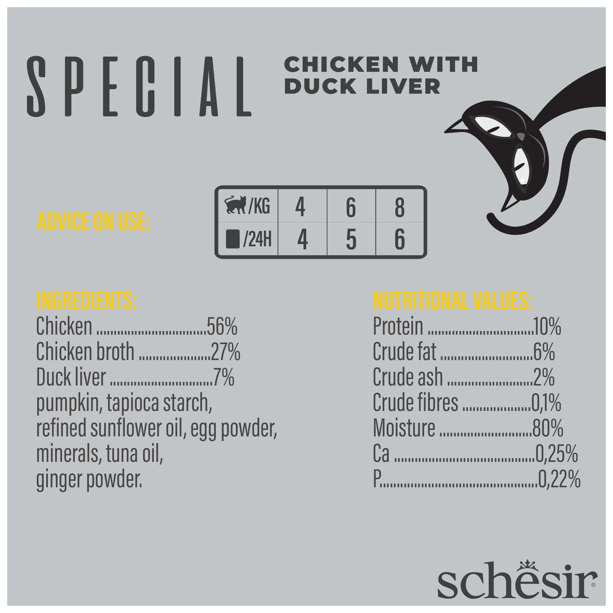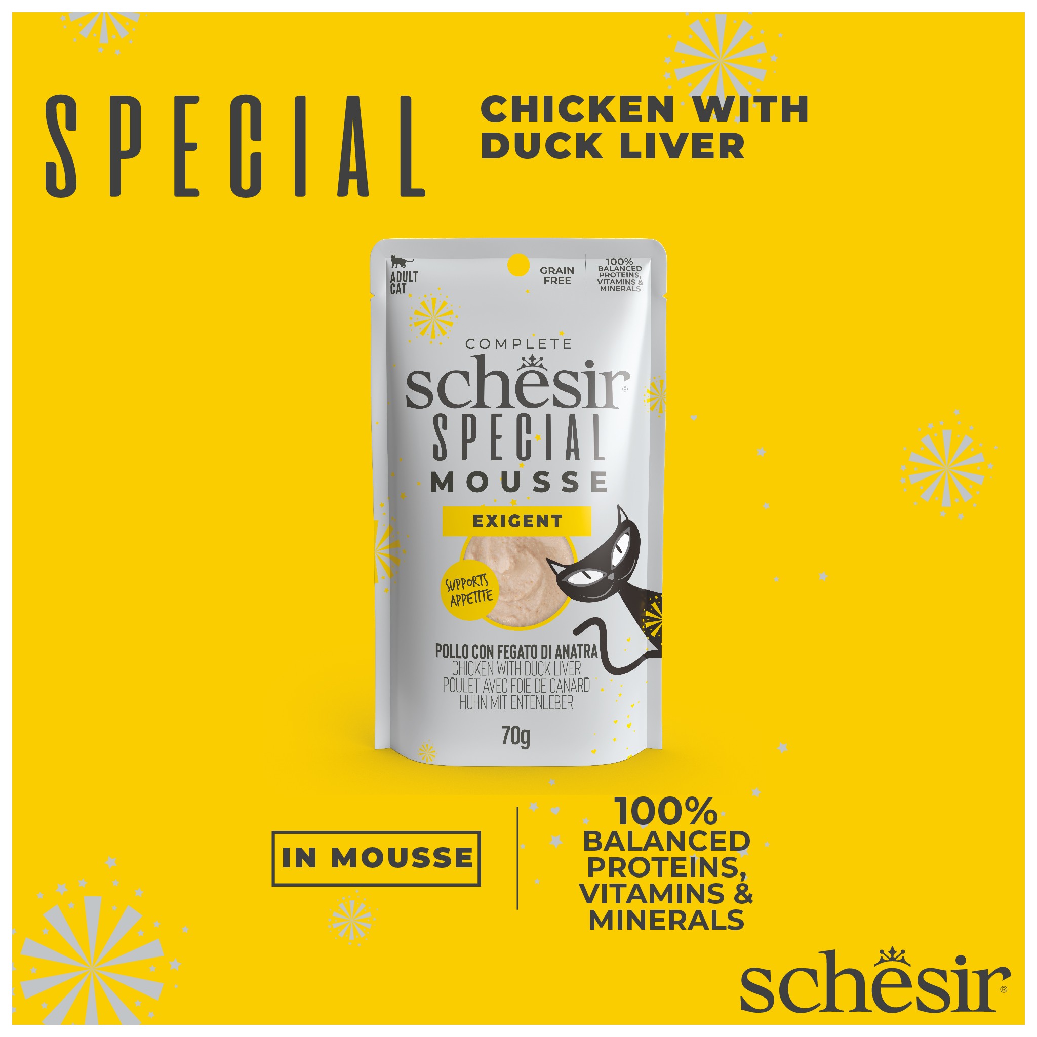 SCHESIR SPECIAL KOT POUCH EXIGENT KURCZAK Z WĄTRÓBKĄ Z KACZKI I JAJKIEM MUS 70g
