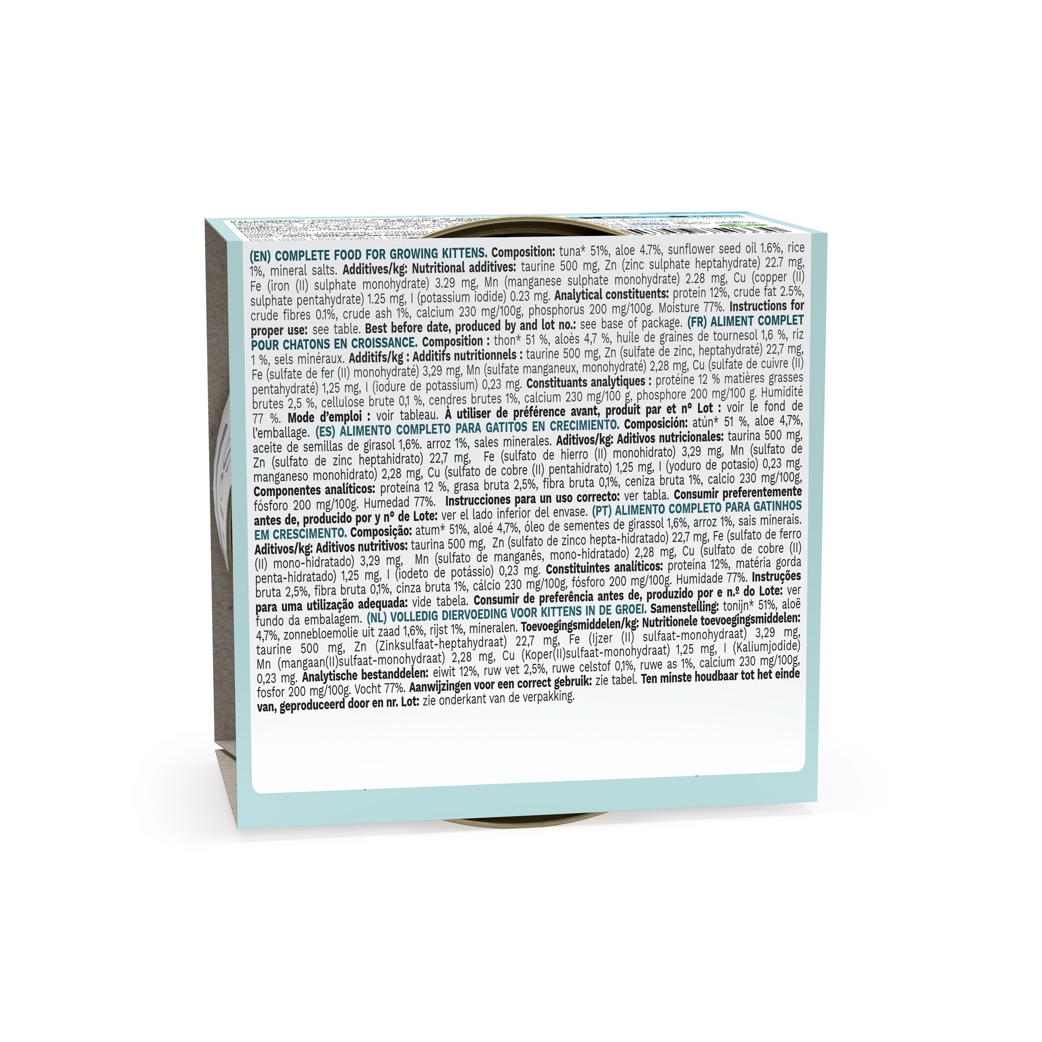 • Pełnowartościowa, kompletna karma – opracowana specjalnie dla kociąt w fazie intensywnego wzrostu (3–12 miesięcy).