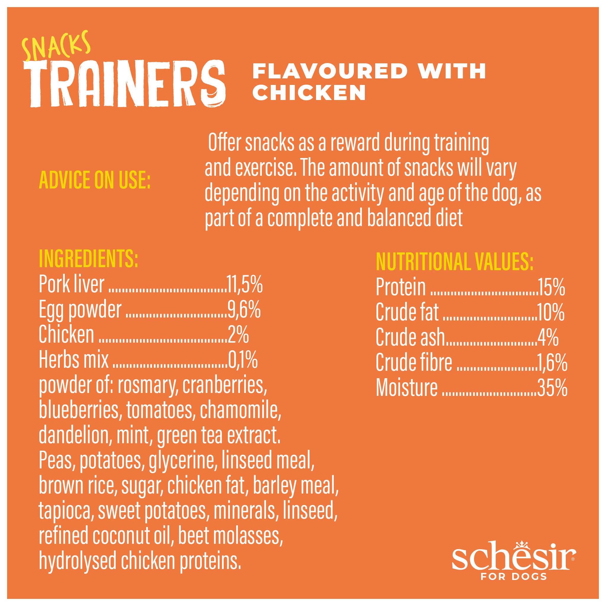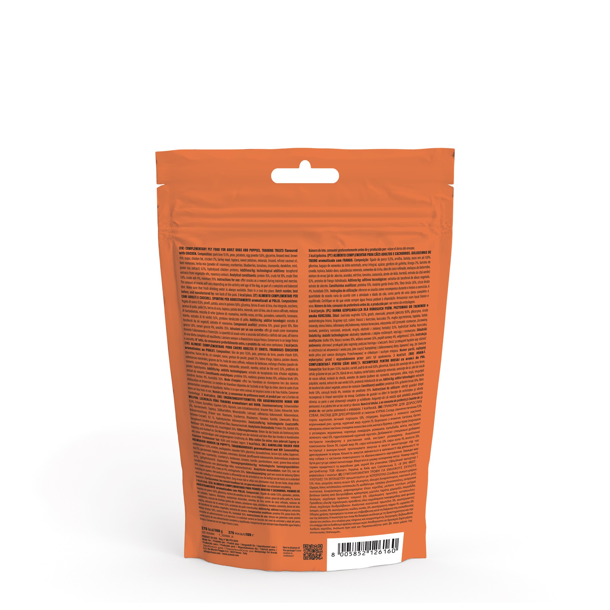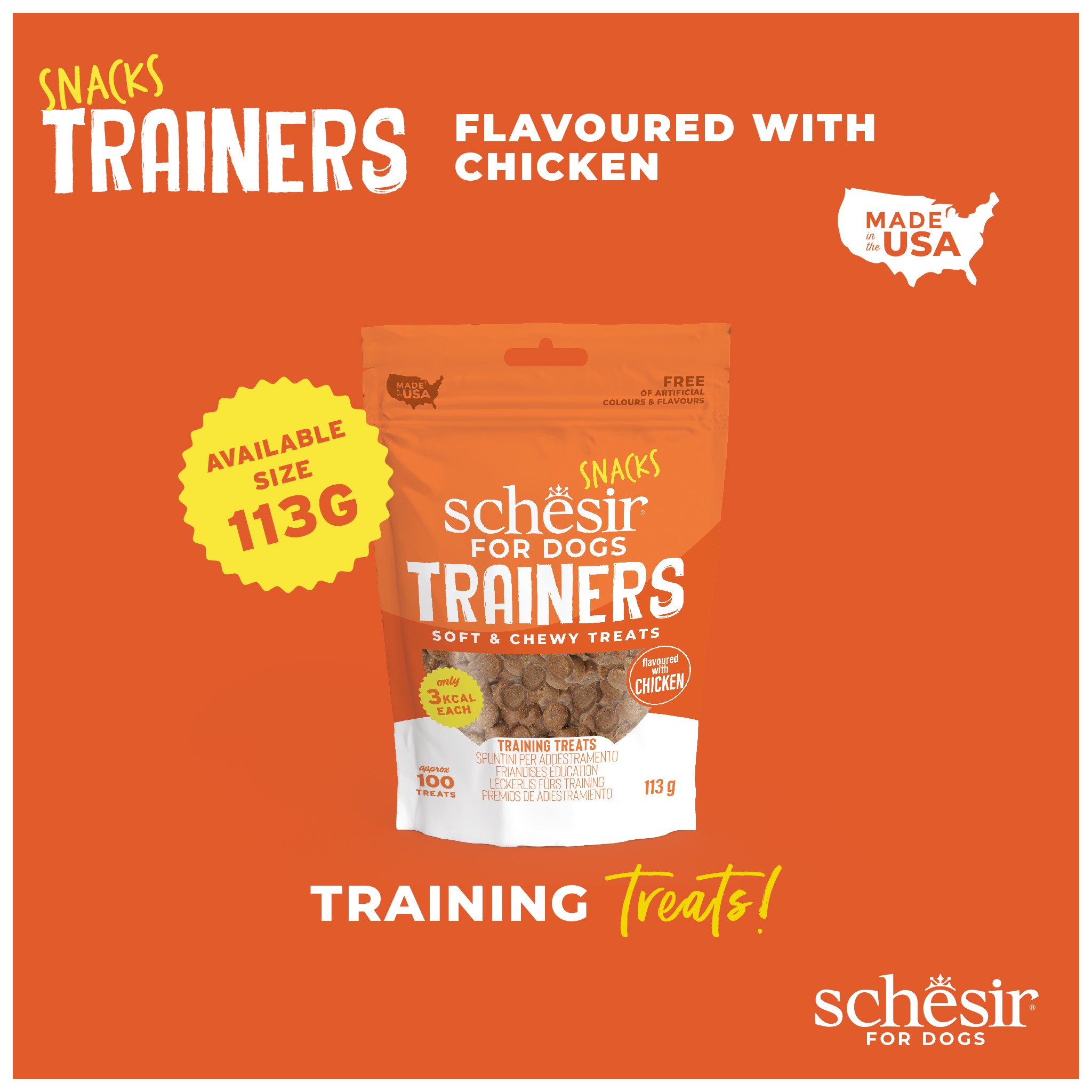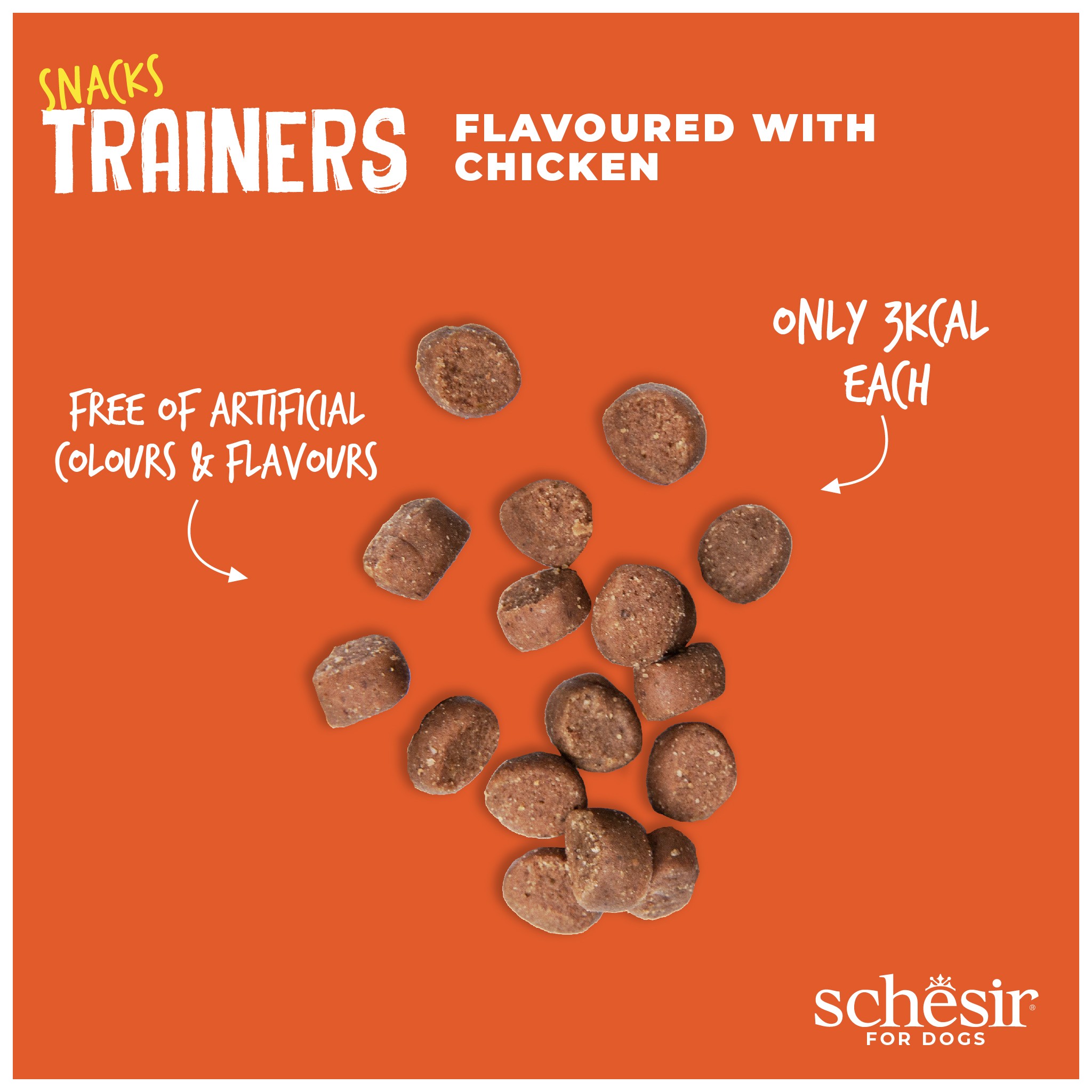 Trenuj swojego psa z tymi miękkimi i żującymi przysmakami o smaku kurczaka, które zapewniają prawdziwą eksplozję smaku i mają niską zawartość kalorii, dzięki czemu możesz bez obaw nagradzać swojego nowego pupila.