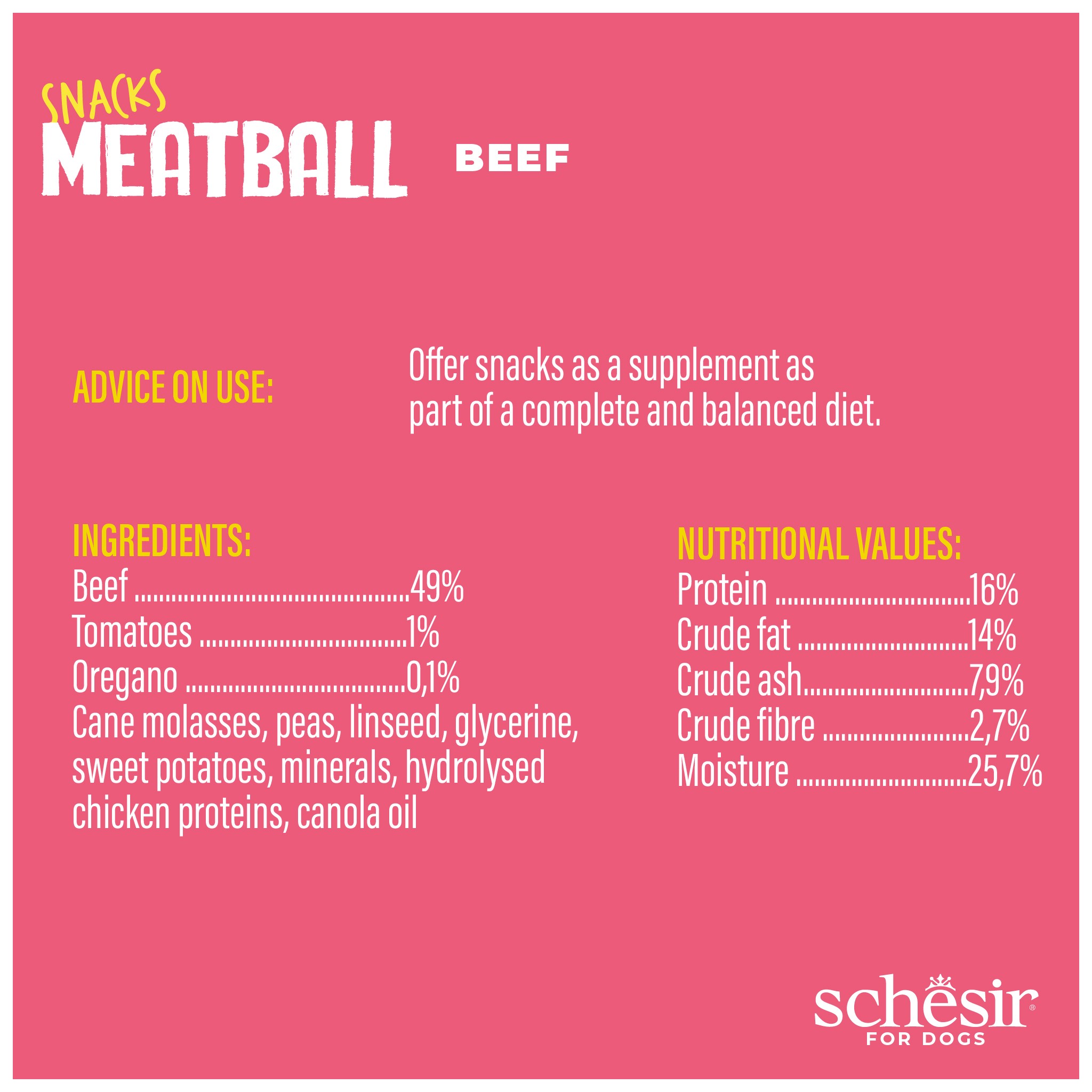 SCHESIR DOG SNACK POUCH MEATBALLS WOŁOWINA 225g