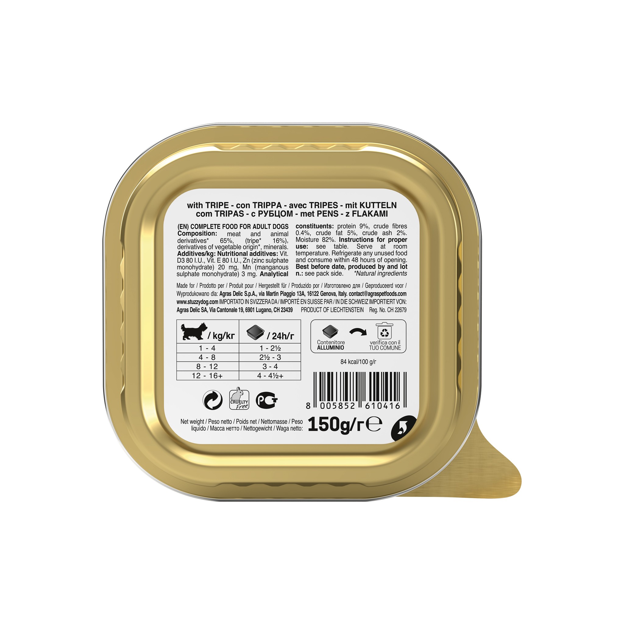 Jeśli Twój pies kocha intensywne smaki, Stuzzy Paté z Żołądkami to idealny wybór dla niego. Jest to karma pełnowartościowa, bogata w smak. Przygotowana z najwyższą starannością, gotowana na parze, aby zachować smak oraz właściwości odżywcze naturalnych składników i prawdziwych kawałków mięsa.