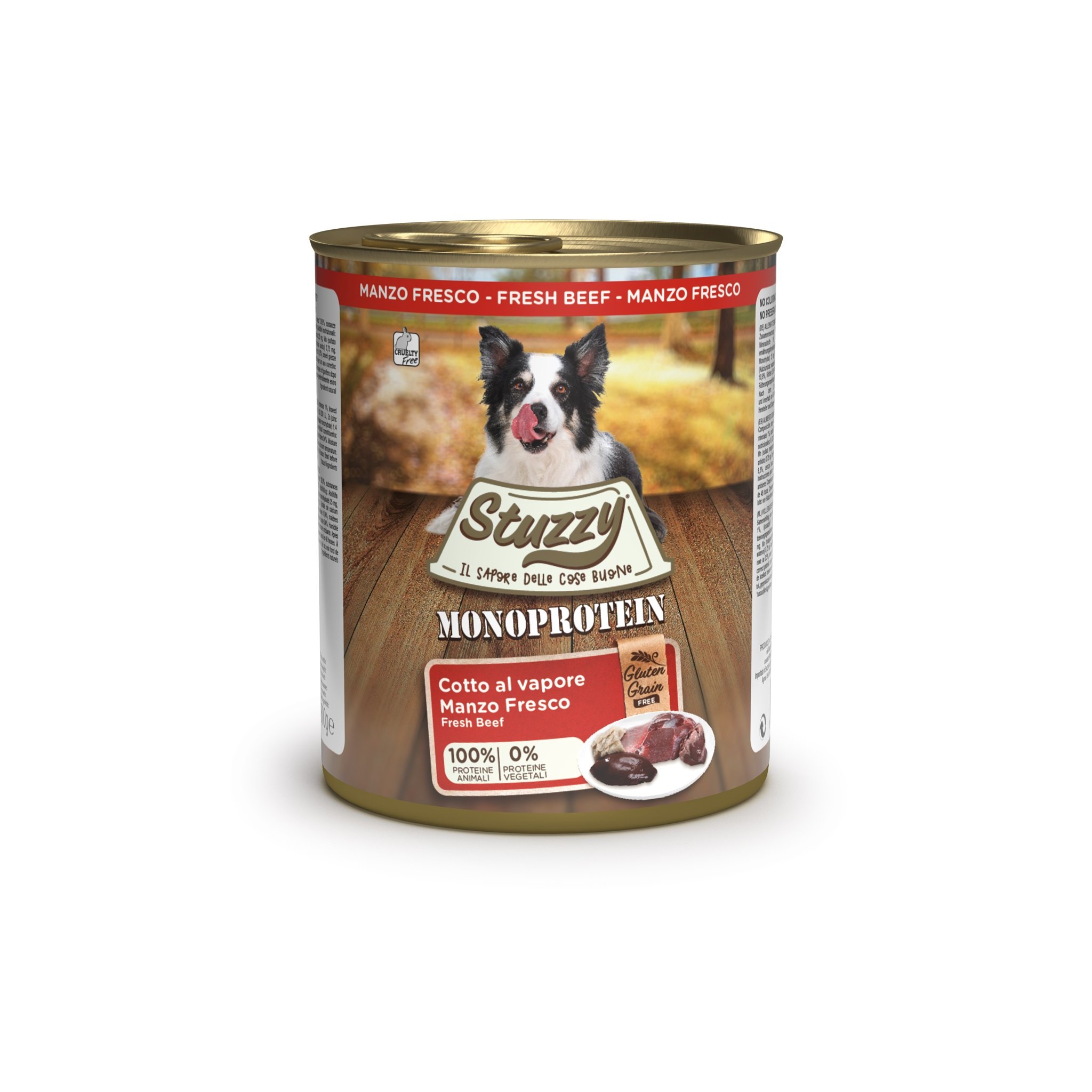Stuzzy Monoprotein Wołowina 800 g to pełnoporcjowa mokra karma w formie delikatnego pasztetu, przeznaczona dla dorosłych psów wszystkich ras. Receptura oparta jest na jednym źródle białka zwierzęcego – świeżej wołowinie, dzięki czemu produkt jest wyjątkowo smakowity, lekkostrawny i odpowiedni dla psów z wrażliwym układem pokarmowym lub nietolerancjami pokarmowymi.