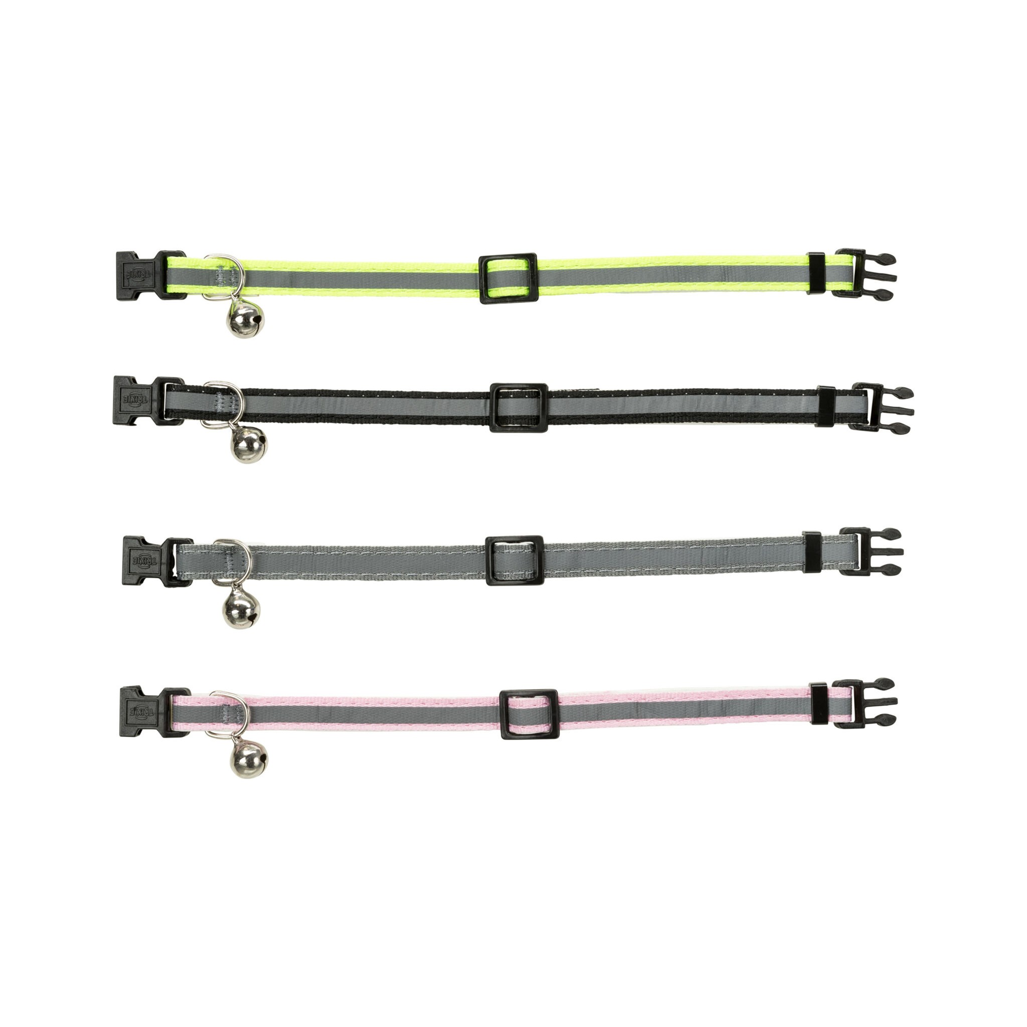 Obróżka dla młodych kotów, wykonana z odblaskowej taśmy parcianej, zapewniająca widoczność w trakcie wieczornych spacerów. Regulowana długość pozwala dostosować ją do rozmiaru kota, a różnorodność kolorów pozwala na wybór ulubionego.