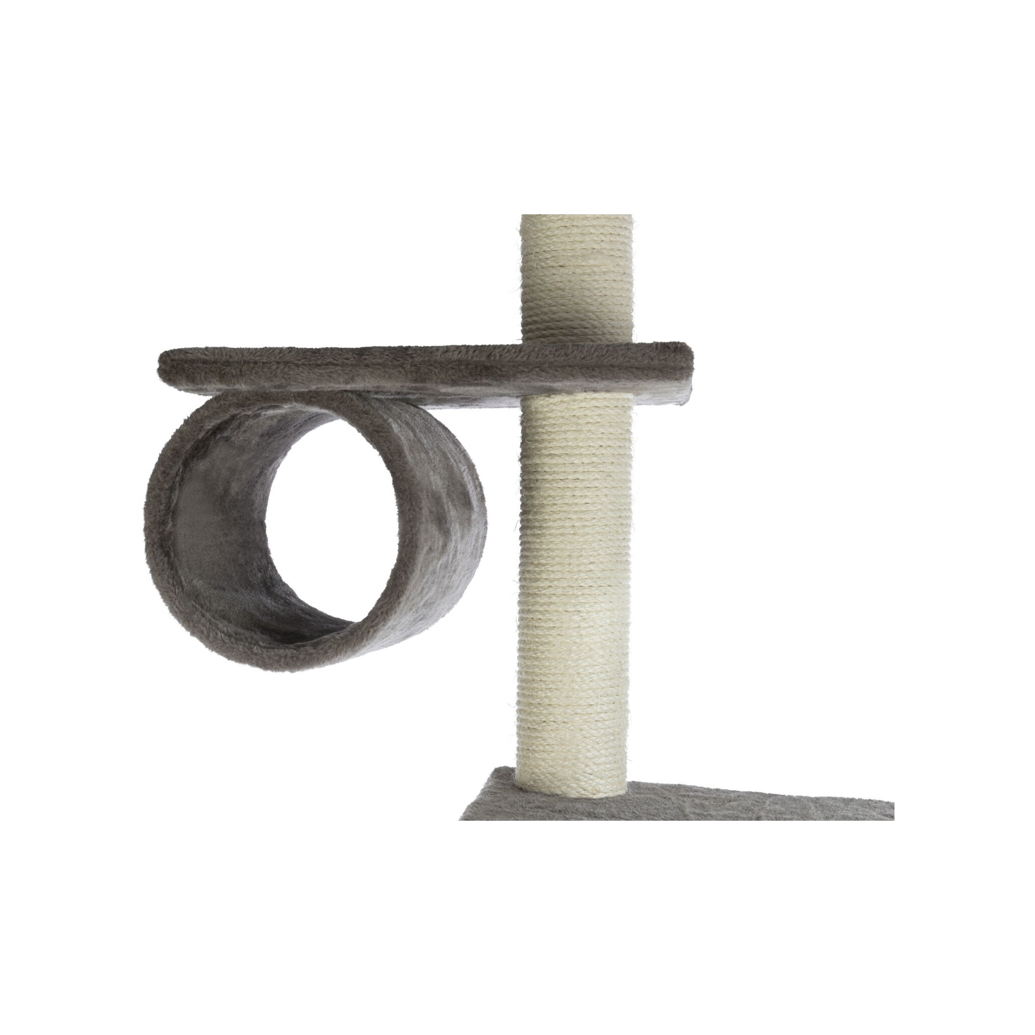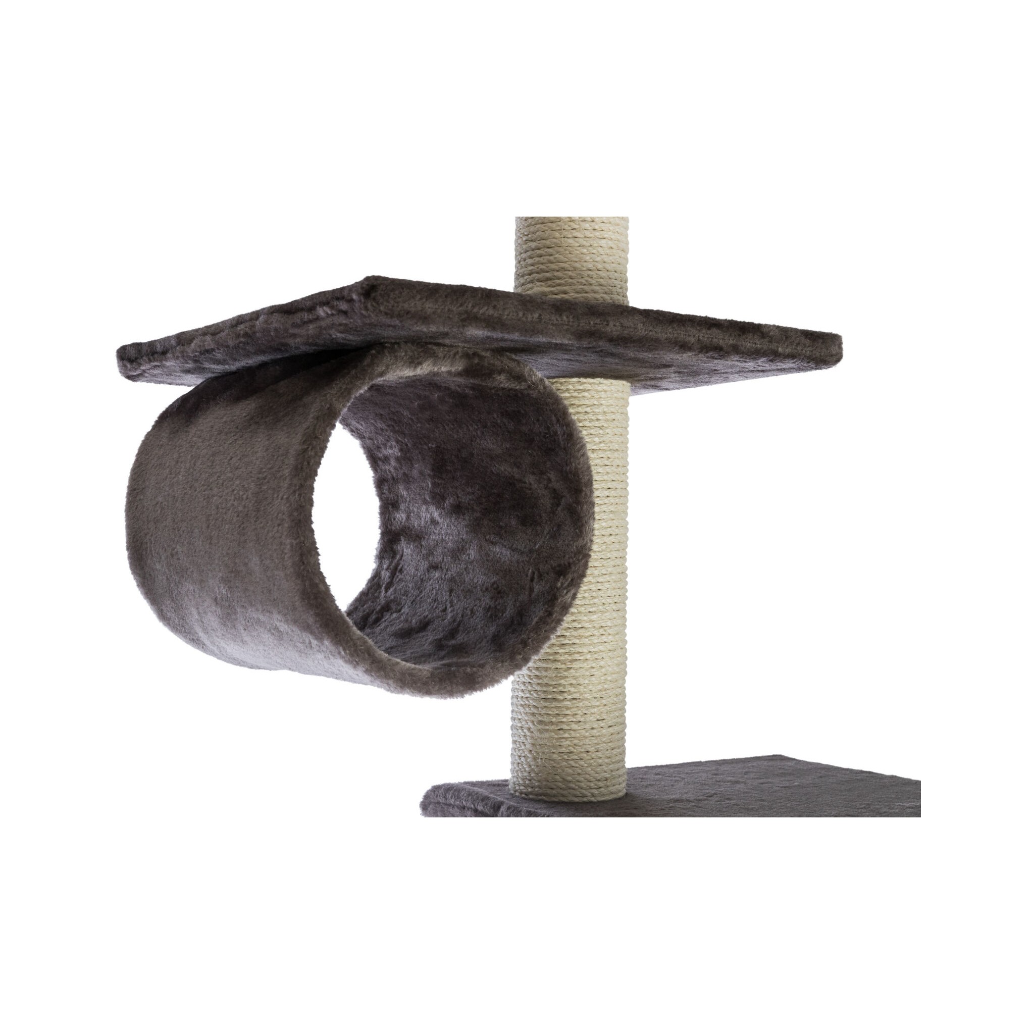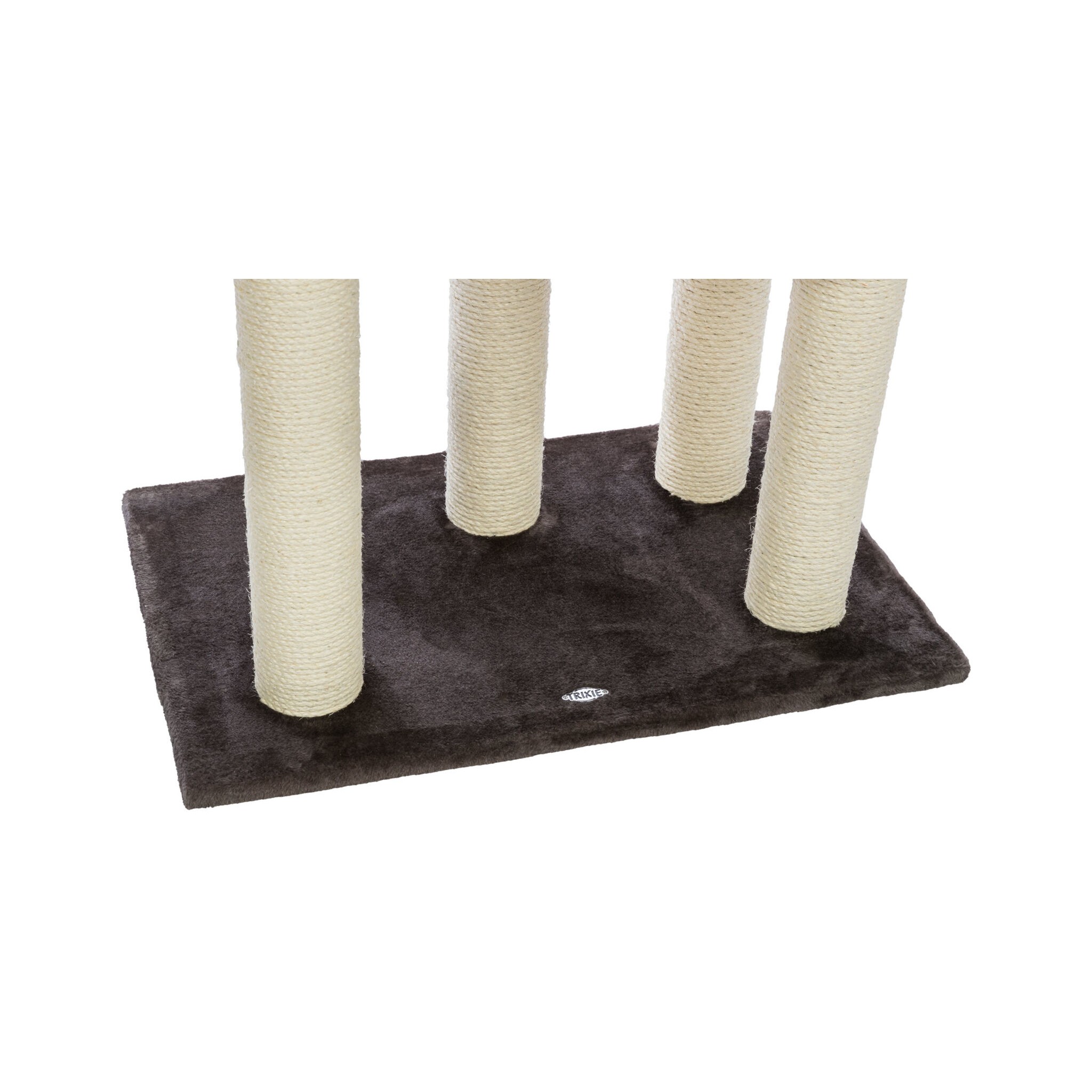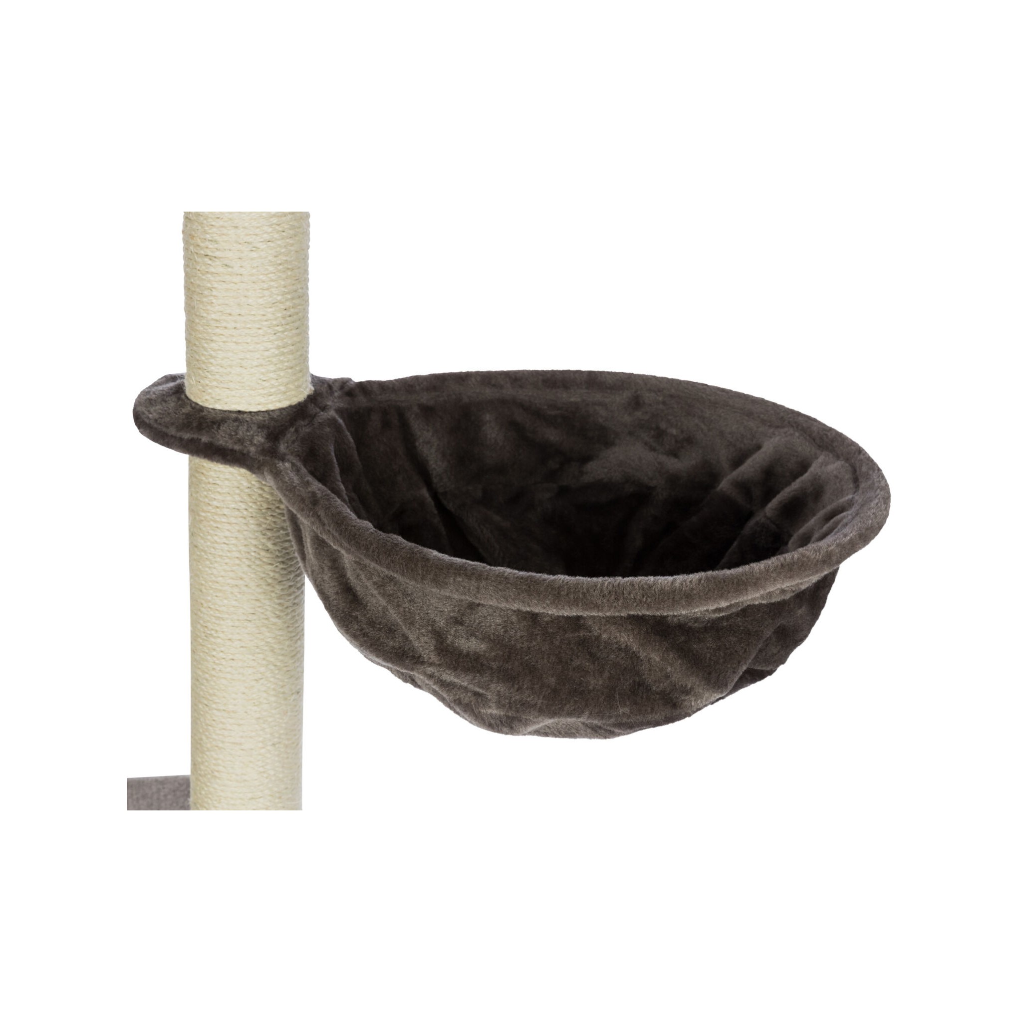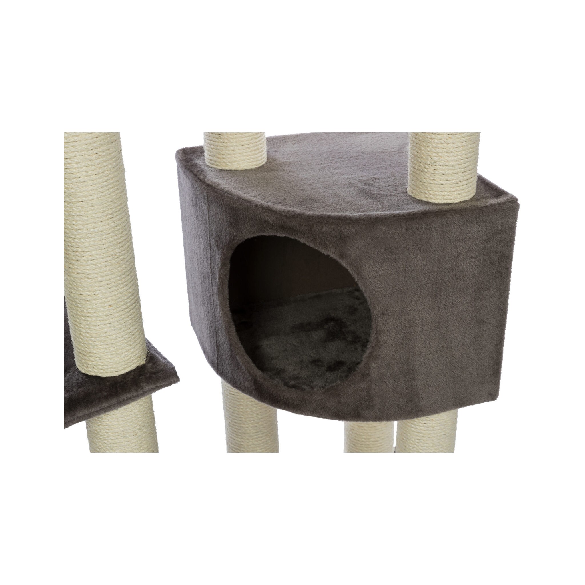 Drapak stojący Madrid to niezwykle stabilne i wysokiej jakości miejsce do wspinaczki oraz pielęgnacji pazurków dla Twojego kota. Obudowany trwałym sizalem o grubości 6 mm, zapewnia idealną powierzchnię do drapania. Tkanina pluszowa (240 g/m²) gwarantuje dodatkowy komfort, będąc jednocześnie delikatnym w dotyku. Model ten jest wyposażony w praktyczne mocowanie sufitowe, co zwiększa stabilność konstrukcji. Legowisko wyściełane miękkim pluszem zapewnia kotu wygodne miejsce do odpoczynku. Drapak prezentuje się w eleganckim, szarym kolorze platynowym, który będzie pasował do wielu wnętrz.