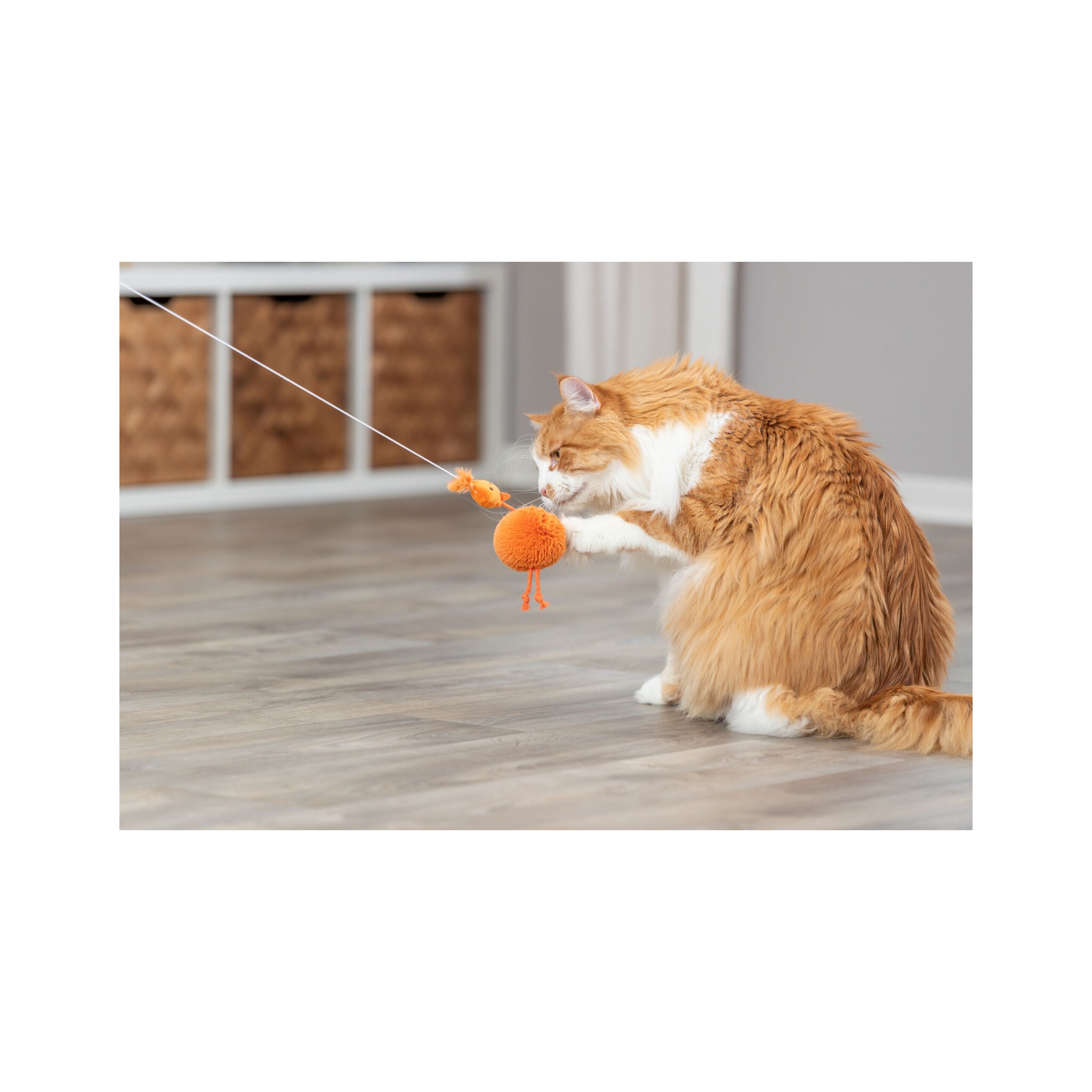 Kurczak na gumce to zabawka dla kotów wykonana z miękkiego pluszu (poliestru) z dodatkowym dzwoneczkiem. Swoim kształtem i długością gumki umożliwia interaktywną zabawę z kotem, zachęcając go do ruchu i aktywności.