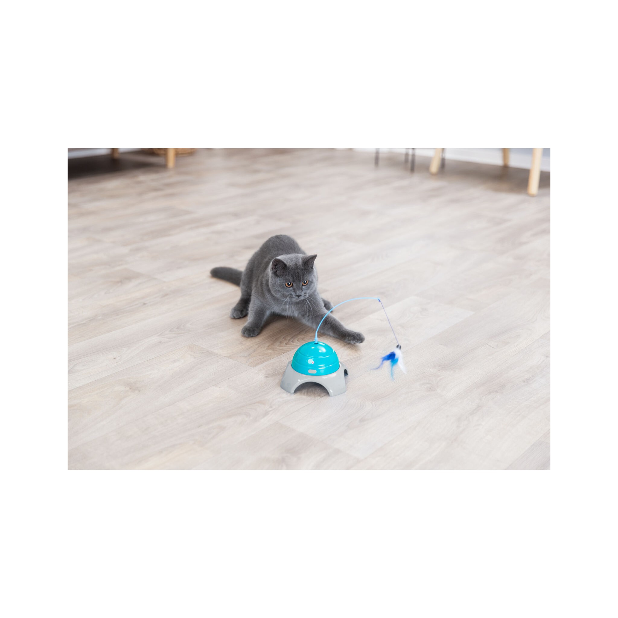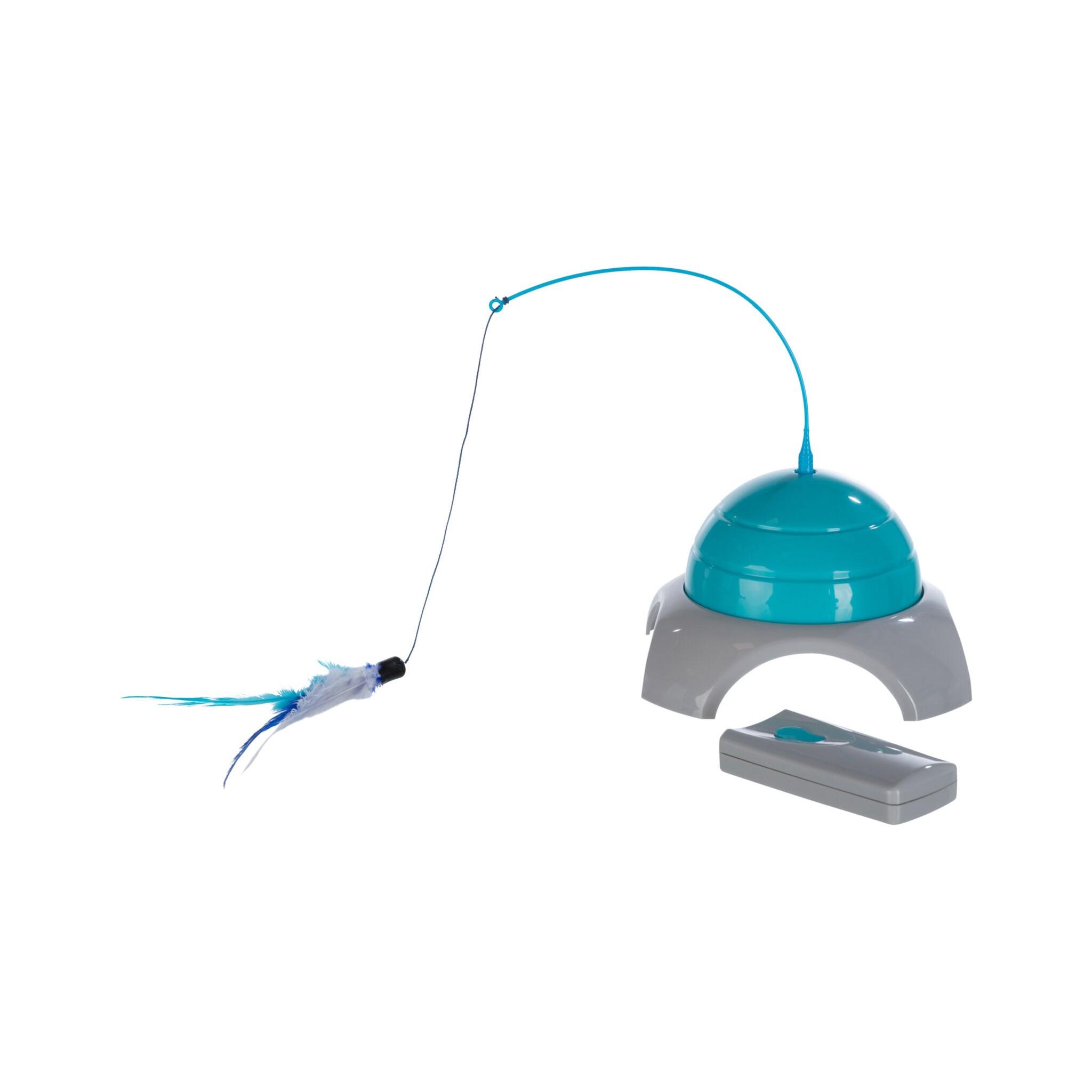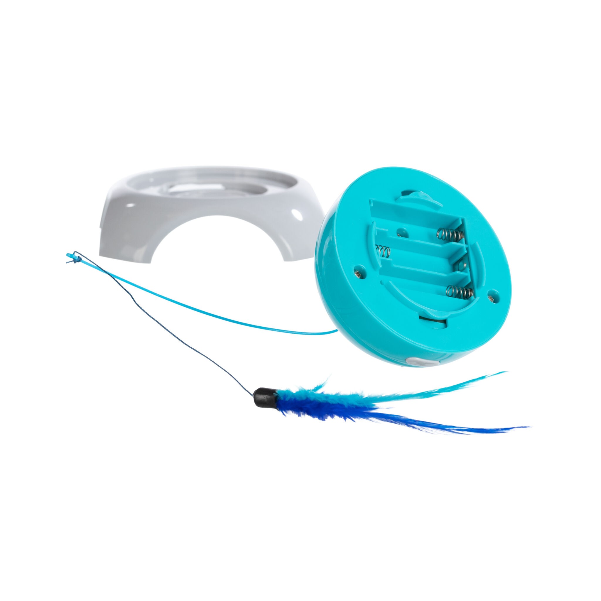 Catch Me z pilotem to innowacyjna zabawka dla kotów, która dostarcza Twojemu pupilowi godziny aktywności i rozrywki. Wyposażona w silnik, który obraca zabawką oraz posiada wymienny patyk, co zapewnia długą żywotność produktu. Zabawka wykonana z bezpiecznego plastiku, zasilana bateriami typu AA, które należy dokupić osobno.