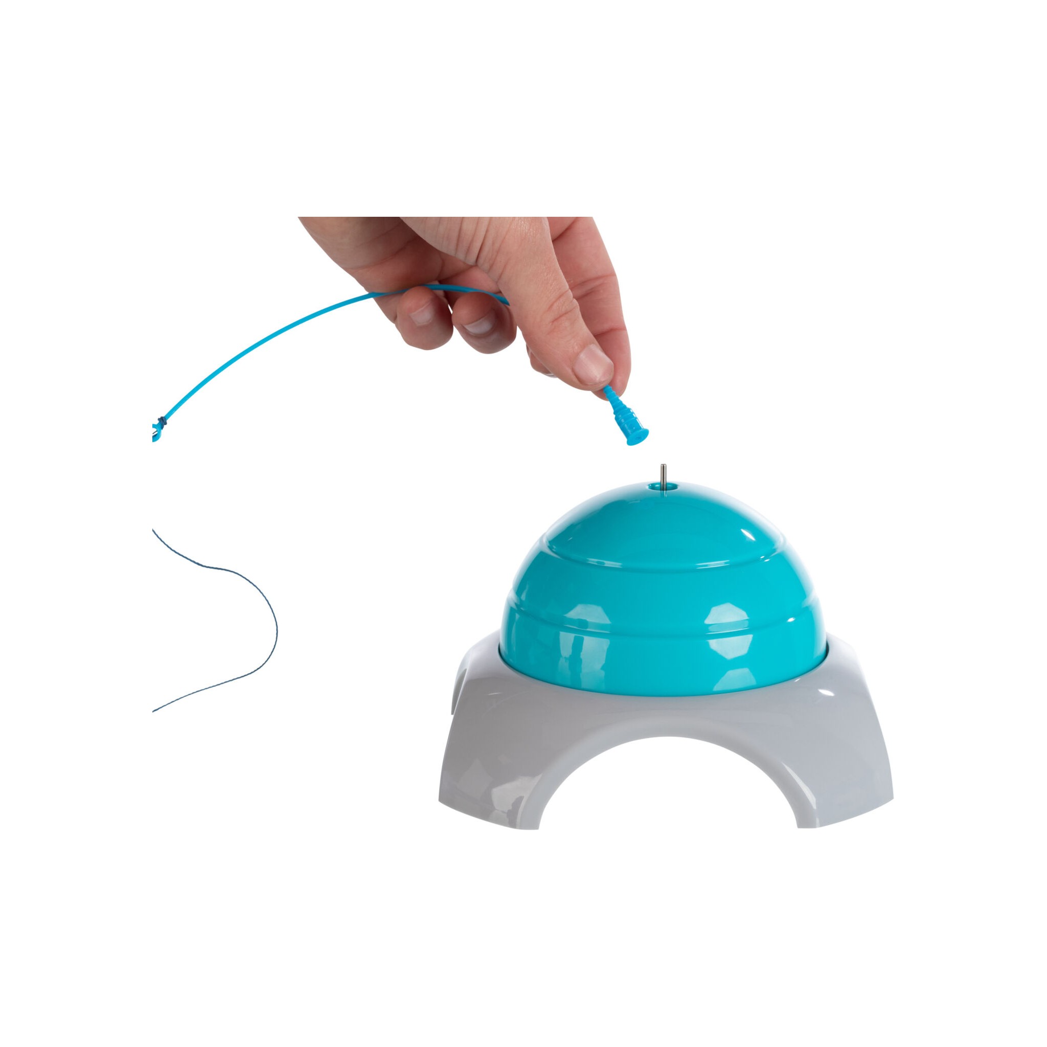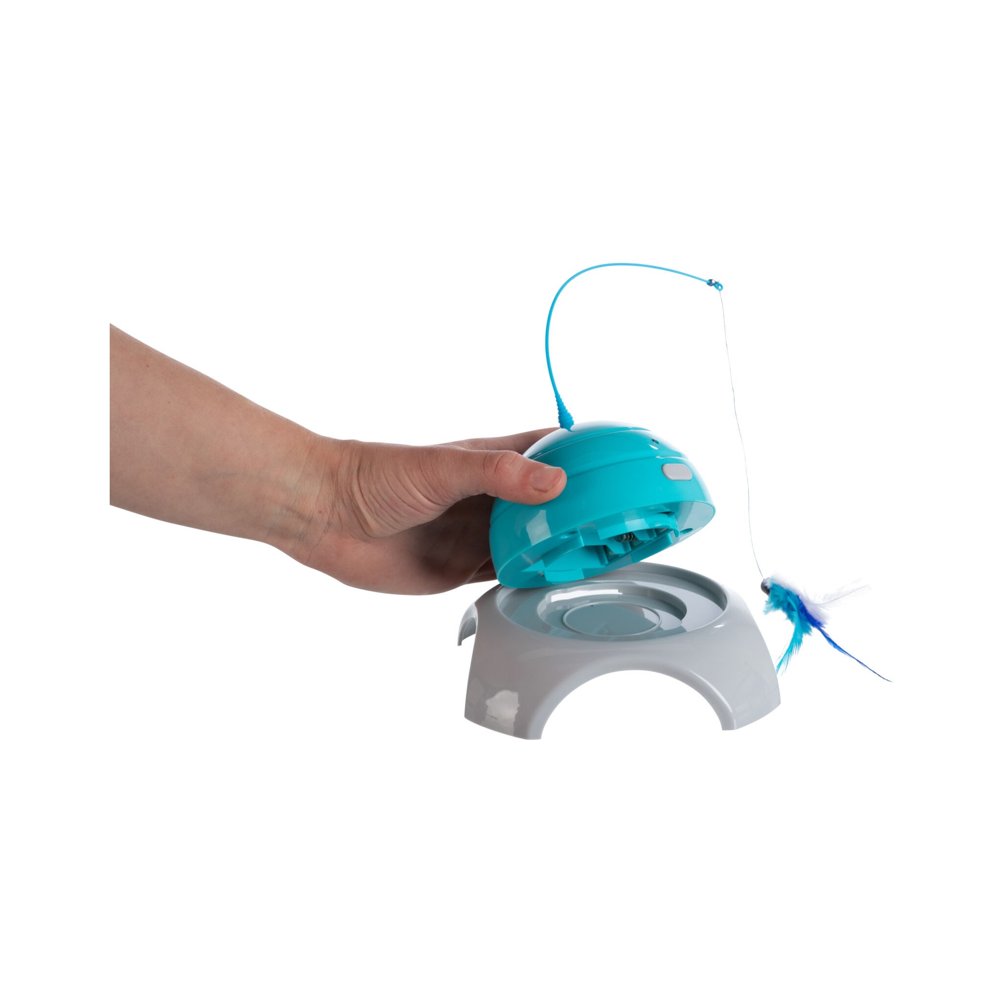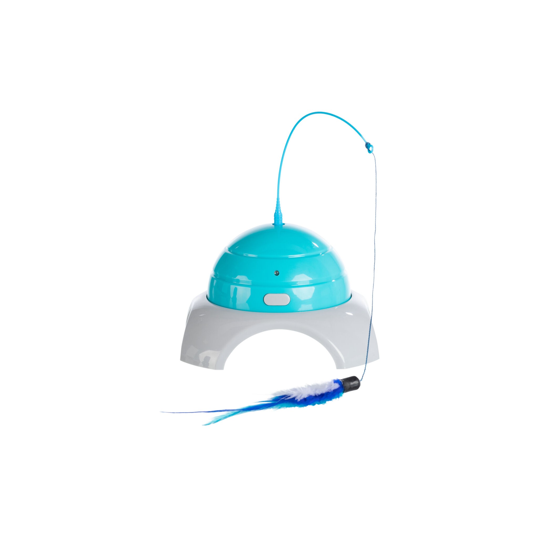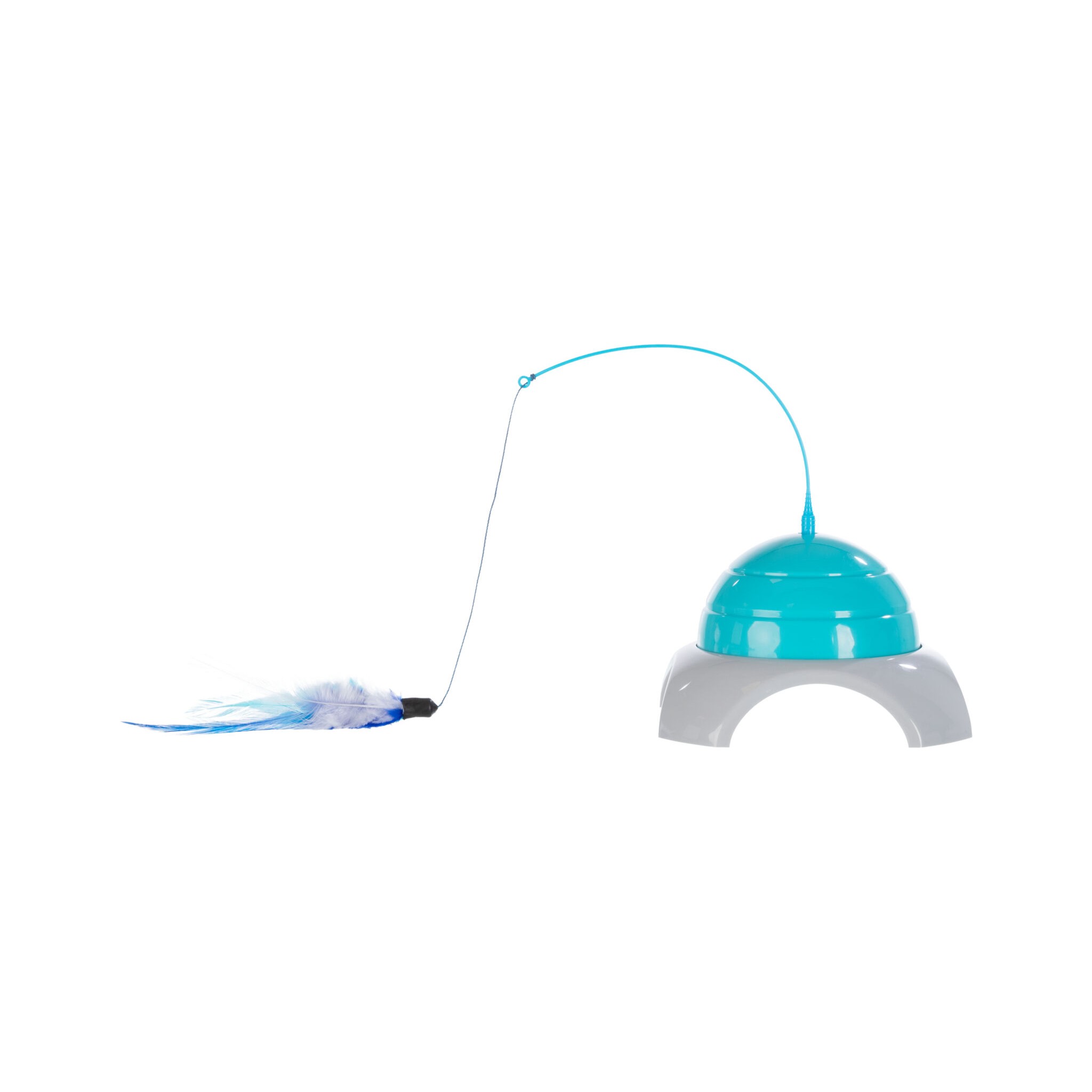 Catch Me z pilotem to innowacyjna zabawka dla kotów, która dostarcza Twojemu pupilowi godziny aktywności i rozrywki. Wyposażona w silnik, który obraca zabawką oraz posiada wymienny patyk, co zapewnia długą żywotność produktu. Zabawka wykonana z bezpiecznego plastiku, zasilana bateriami typu AA, które należy dokupić osobno.