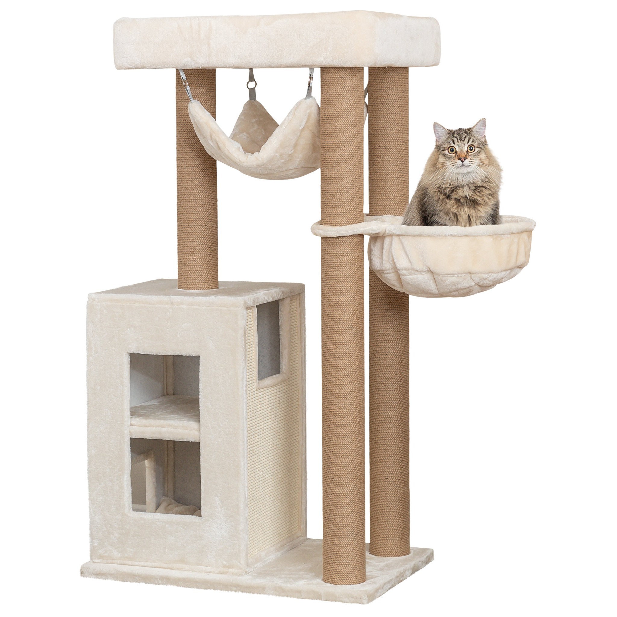 Drapak został stworzony z myślą o dużych kotach, zapewniając im komfort i wygodę podczas zabawy oraz wypoczynku.