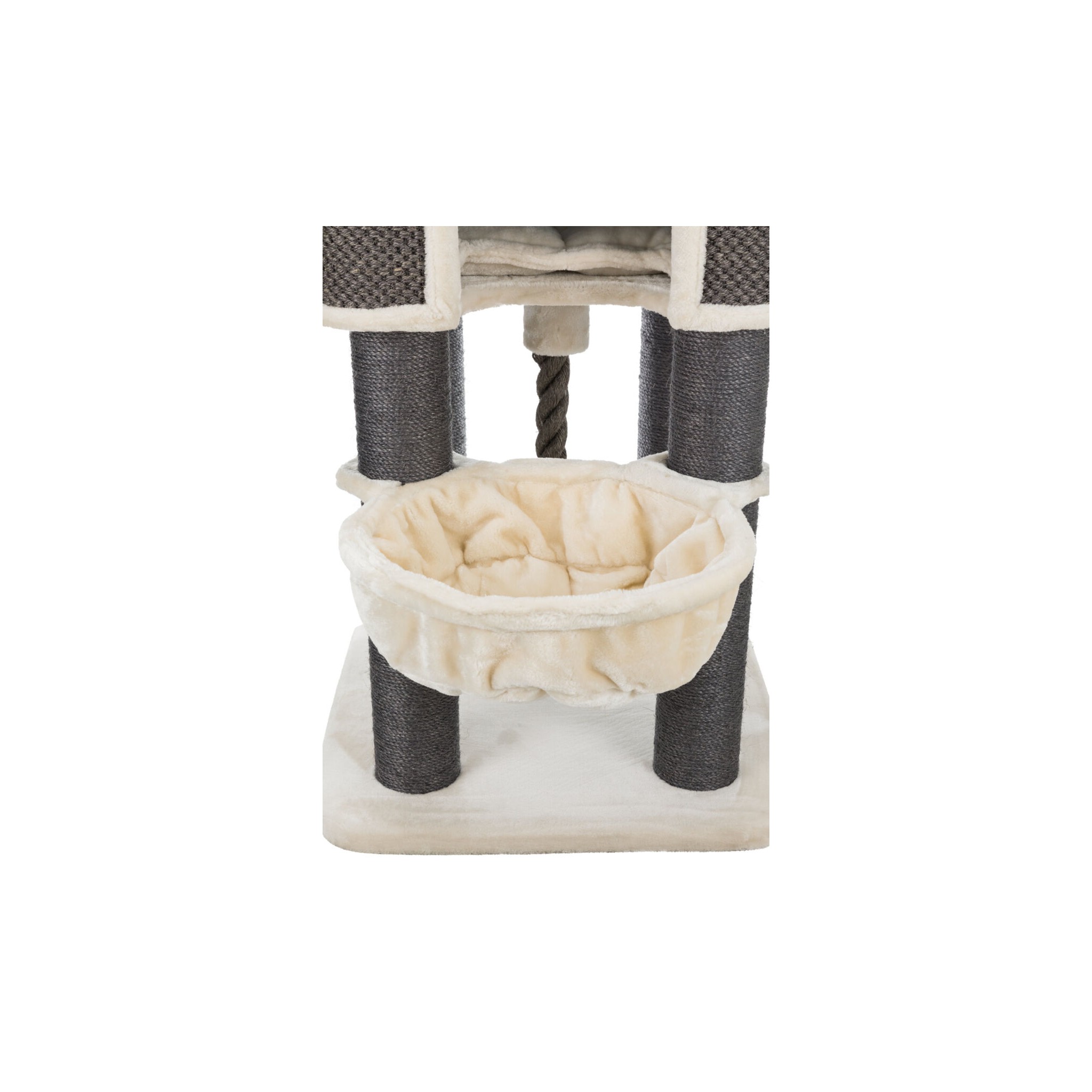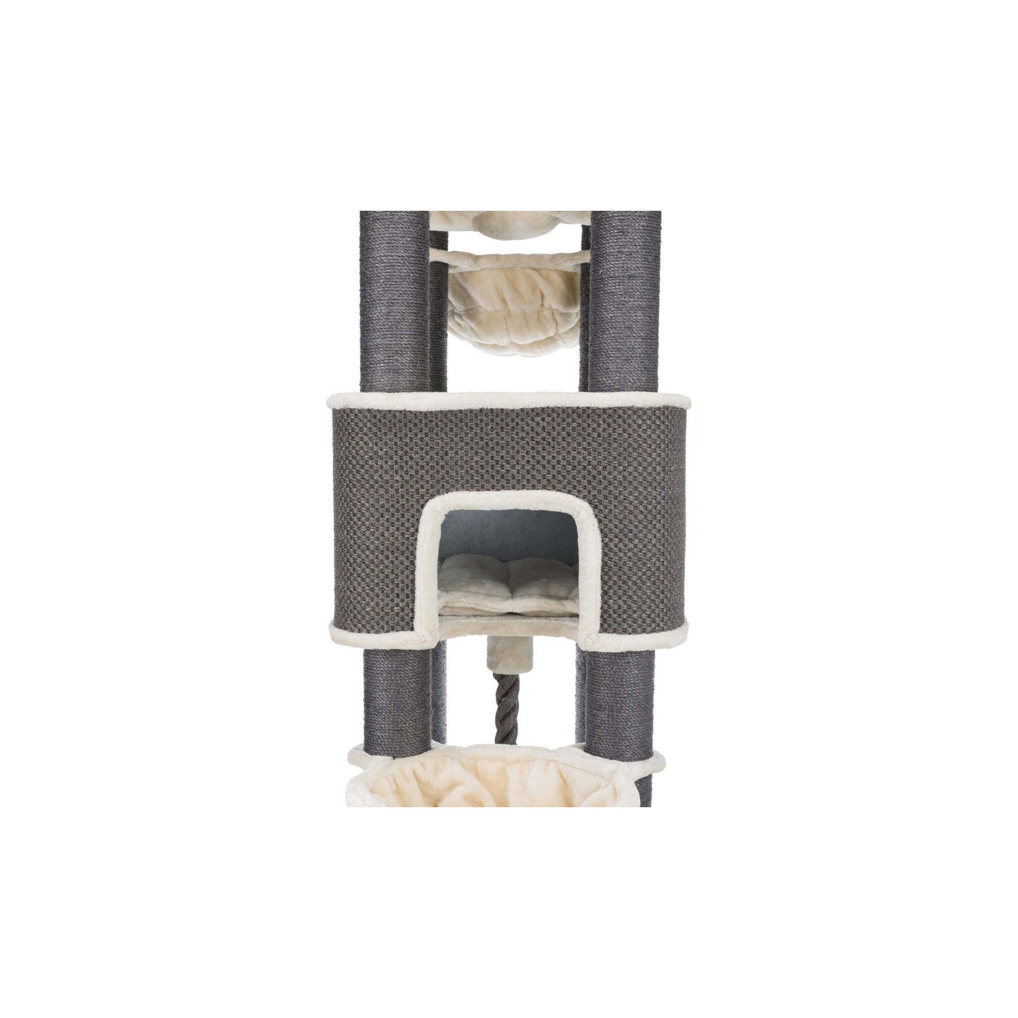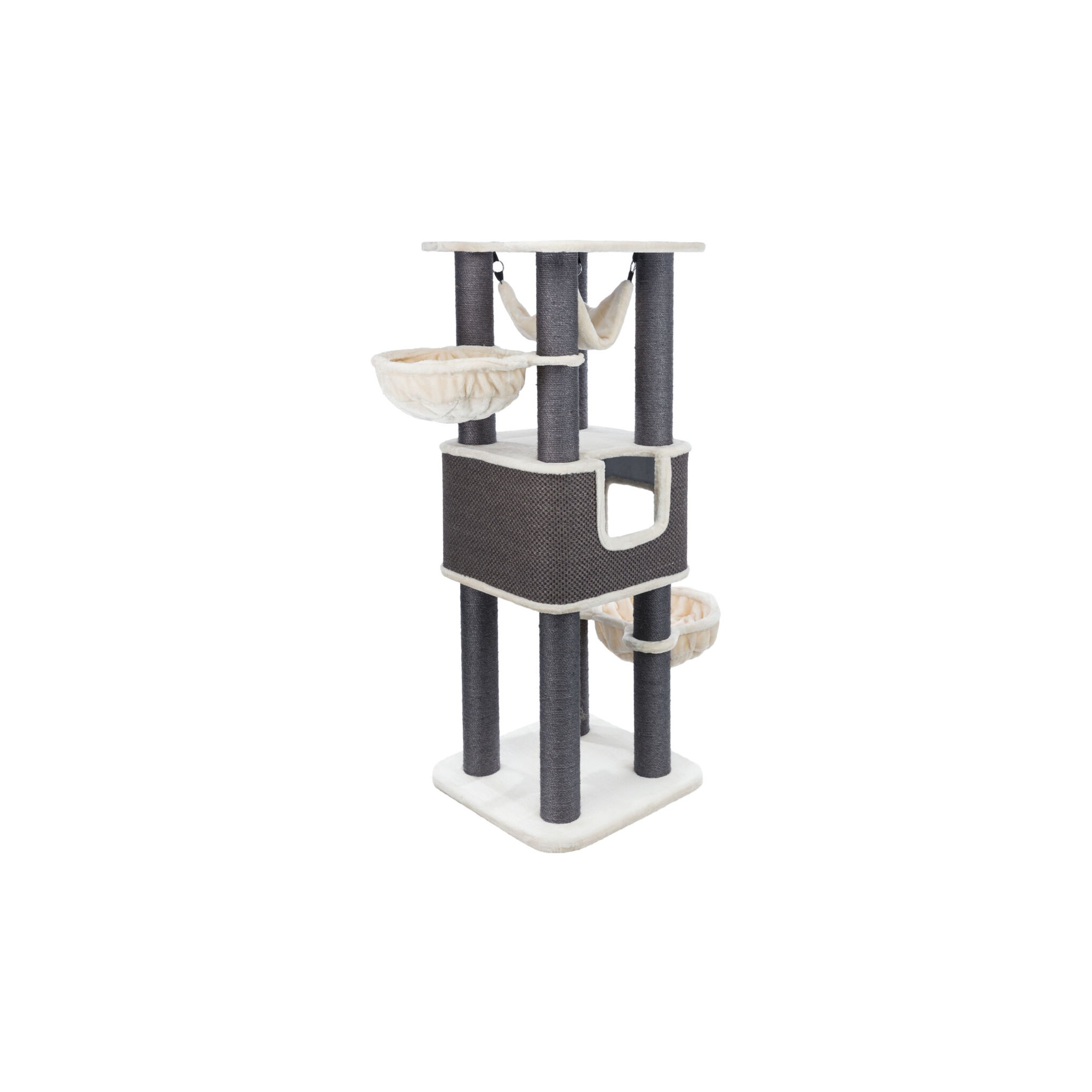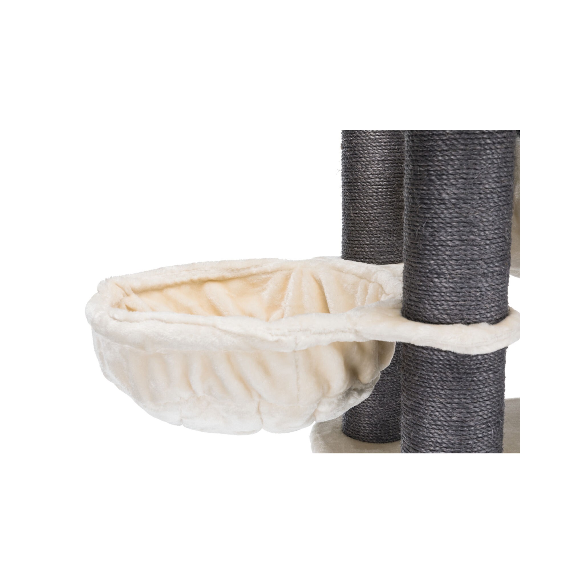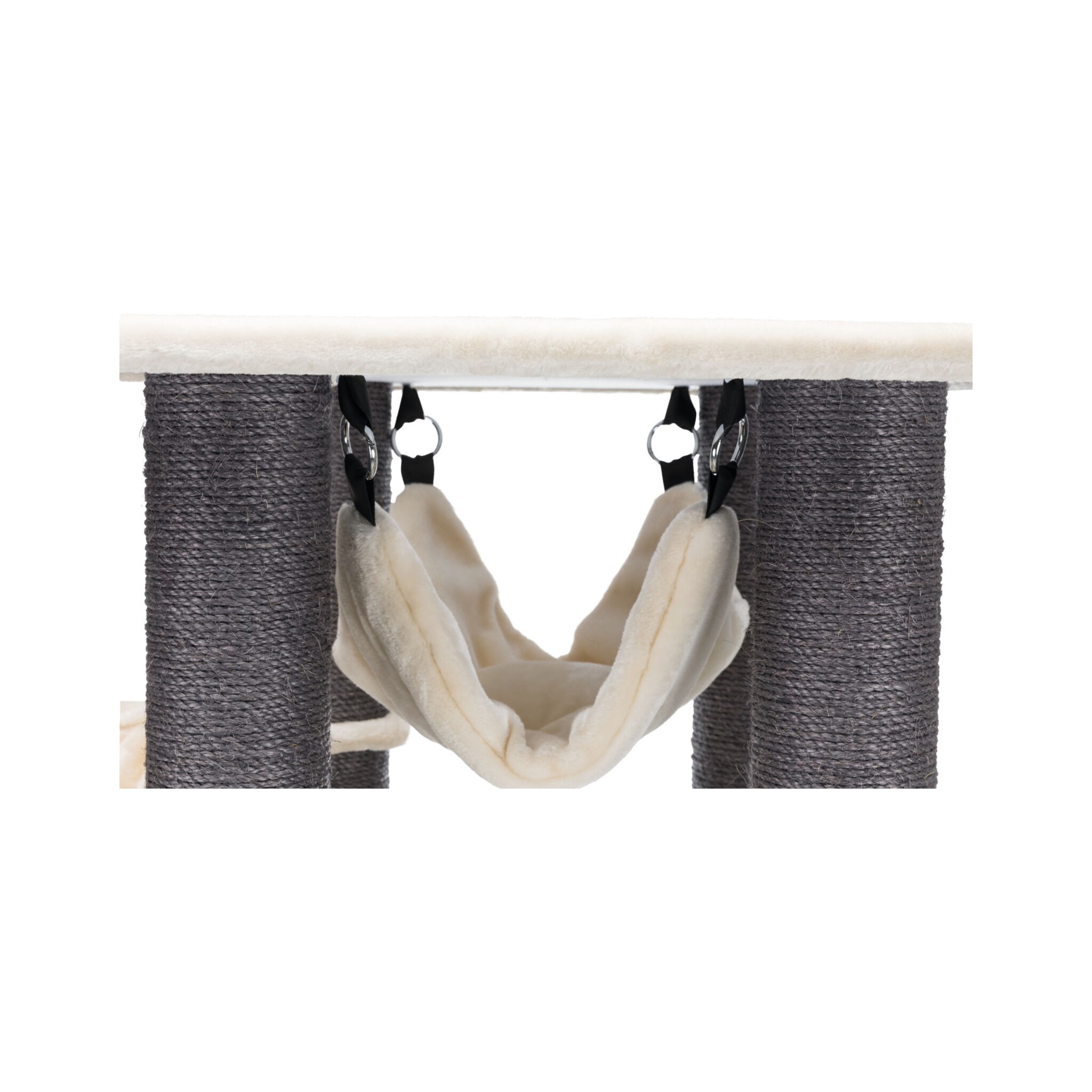 Drapak stojący XXL Humberto to wysokiej jakości akcesorium stworzone z myślą o dużych kotach. Produkt wykonany z trwałego sizalu o grubości 6 mm zapewnia doskonałe miejsce do drapania, co jest niezbędne dla zdrowia i dobrego samopoczucia każdego kota. Posiada także wysokiej jakości plusz o gramaturze 350 g/m², co gwarantuje miękkie i komfortowe miejsce do wypoczynku. Drapak wyposażony jest w dwa przestronne, wyściełane legowiska oraz dwustronną poduszkę, którą można prać ręcznie. Dodatkowo, zdejmowany hamak stanowi idealne miejsce do drzemki, a jego grubość i wyściełanie zapewniają maksymalny komfort. Ciężka i stabilna płyta podstawowa gwarantuje bezpieczeństwo i stabilność drapaka.