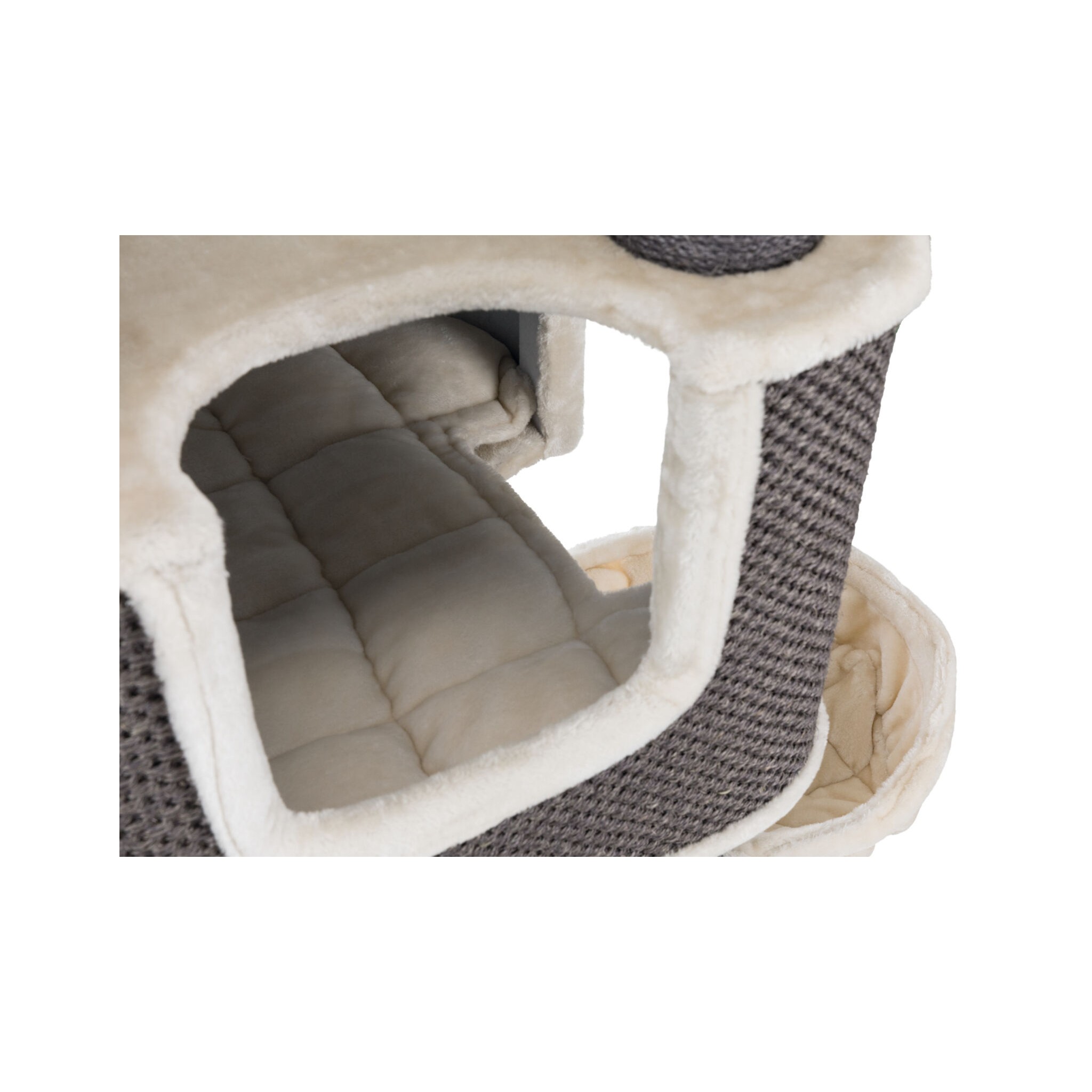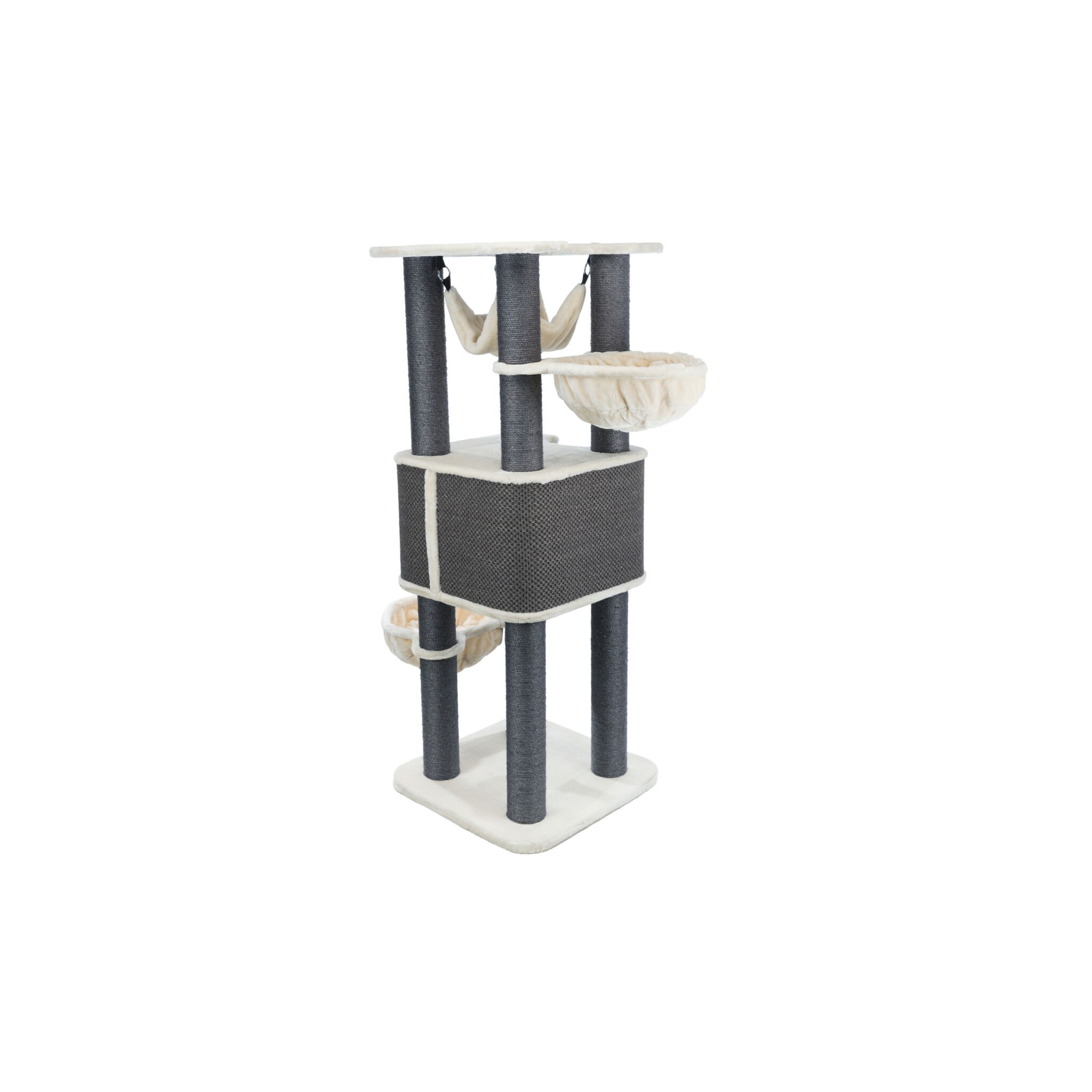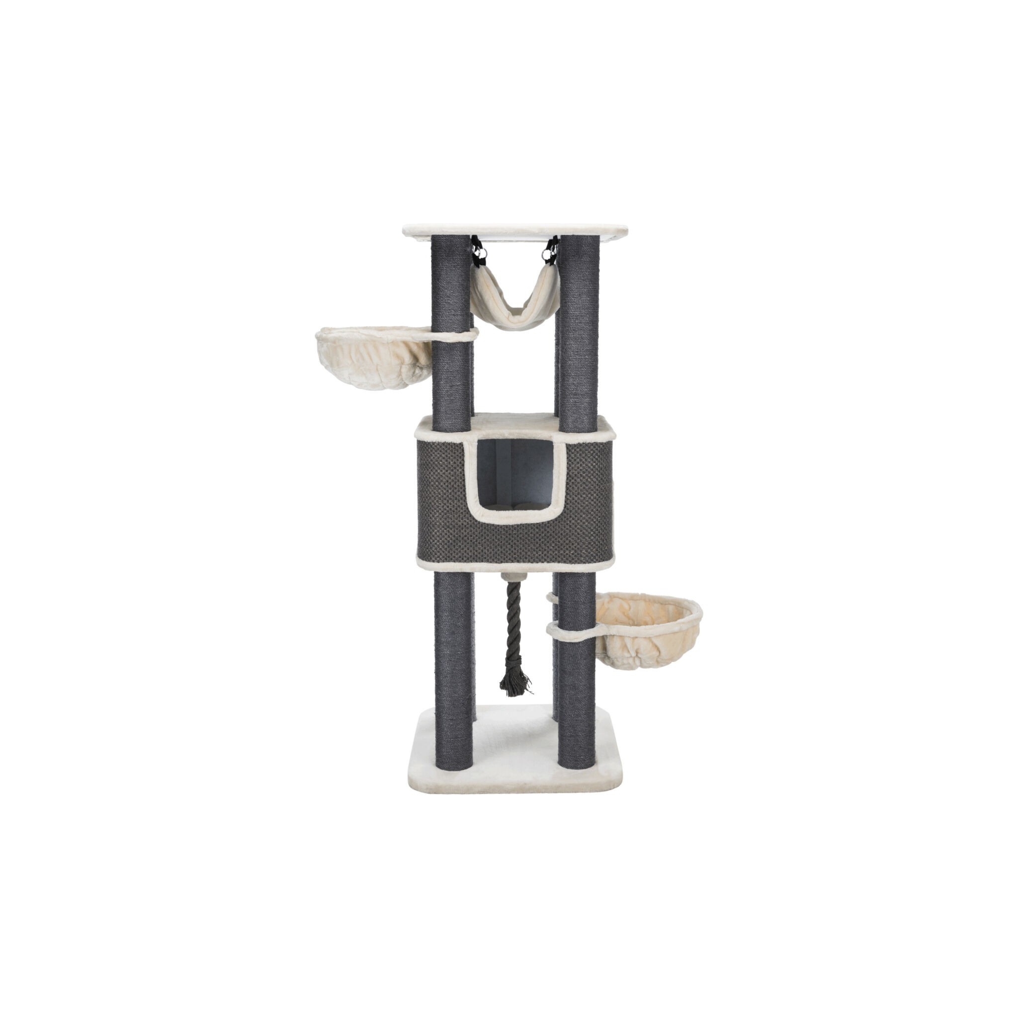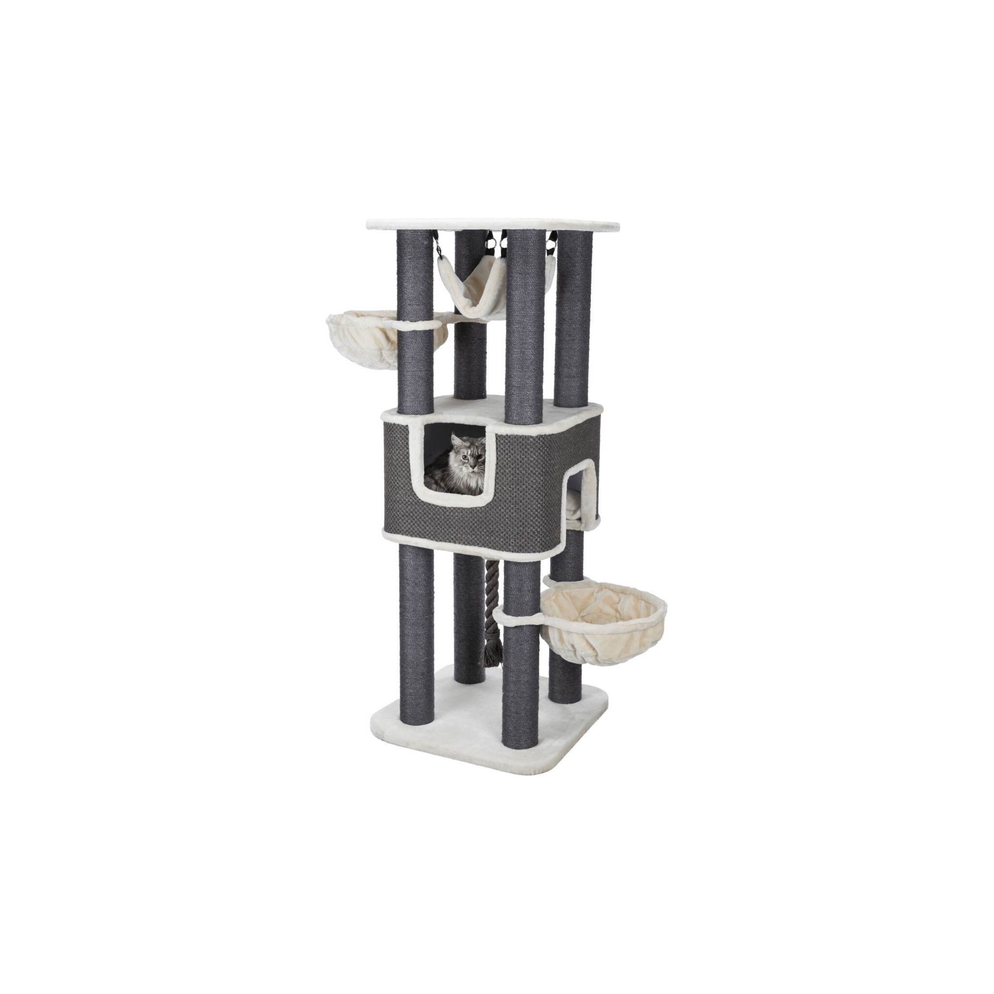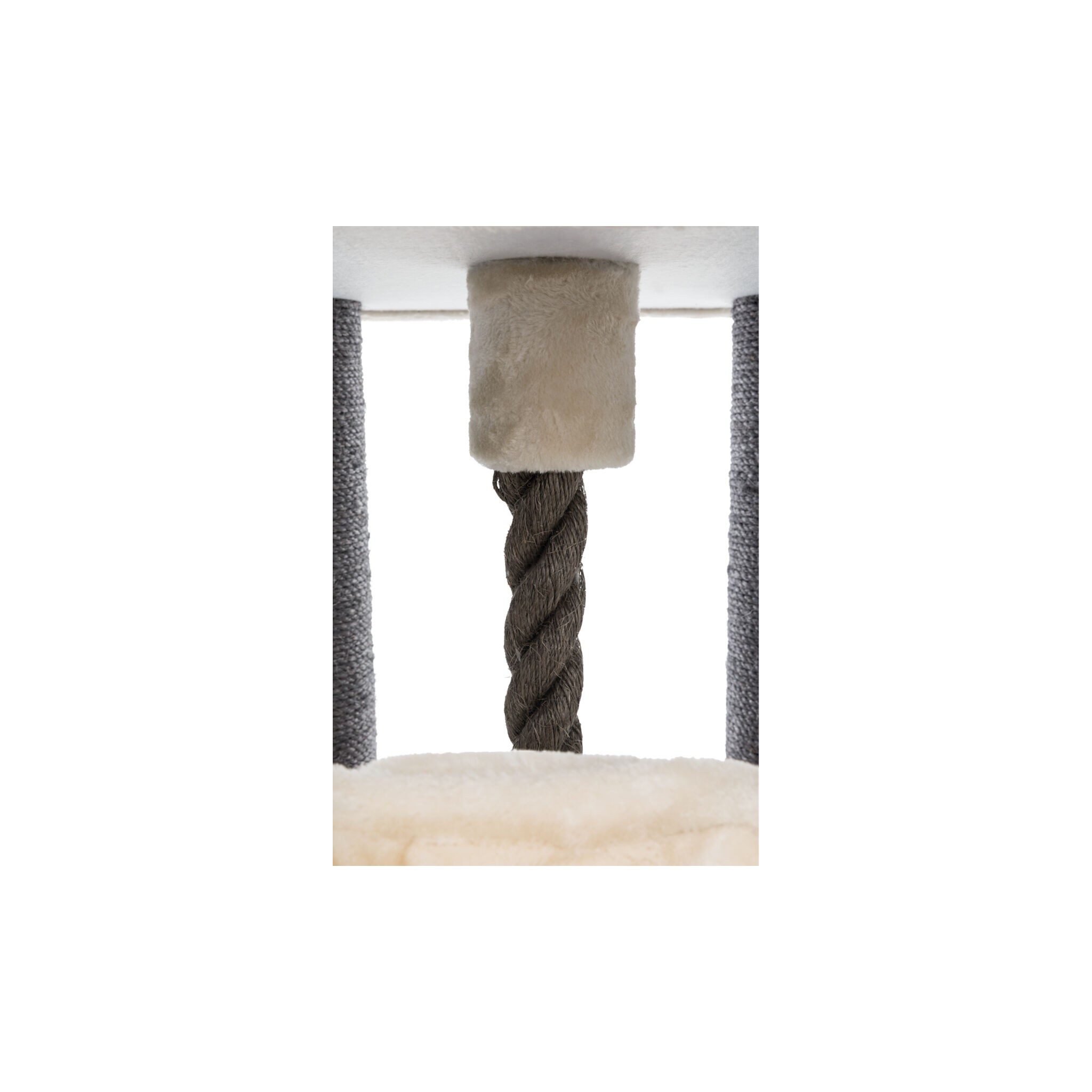Drapak stojący XXL Humberto to wysokiej jakości akcesorium stworzone z myślą o dużych kotach. Produkt wykonany z trwałego sizalu o grubości 6 mm zapewnia doskonałe miejsce do drapania, co jest niezbędne dla zdrowia i dobrego samopoczucia każdego kota. Posiada także wysokiej jakości plusz o gramaturze 350 g/m², co gwarantuje miękkie i komfortowe miejsce do wypoczynku. Drapak wyposażony jest w dwa przestronne, wyściełane legowiska oraz dwustronną poduszkę, którą można prać ręcznie. Dodatkowo, zdejmowany hamak stanowi idealne miejsce do drzemki, a jego grubość i wyściełanie zapewniają maksymalny komfort. Ciężka i stabilna płyta podstawowa gwarantuje bezpieczeństwo i stabilność drapaka.