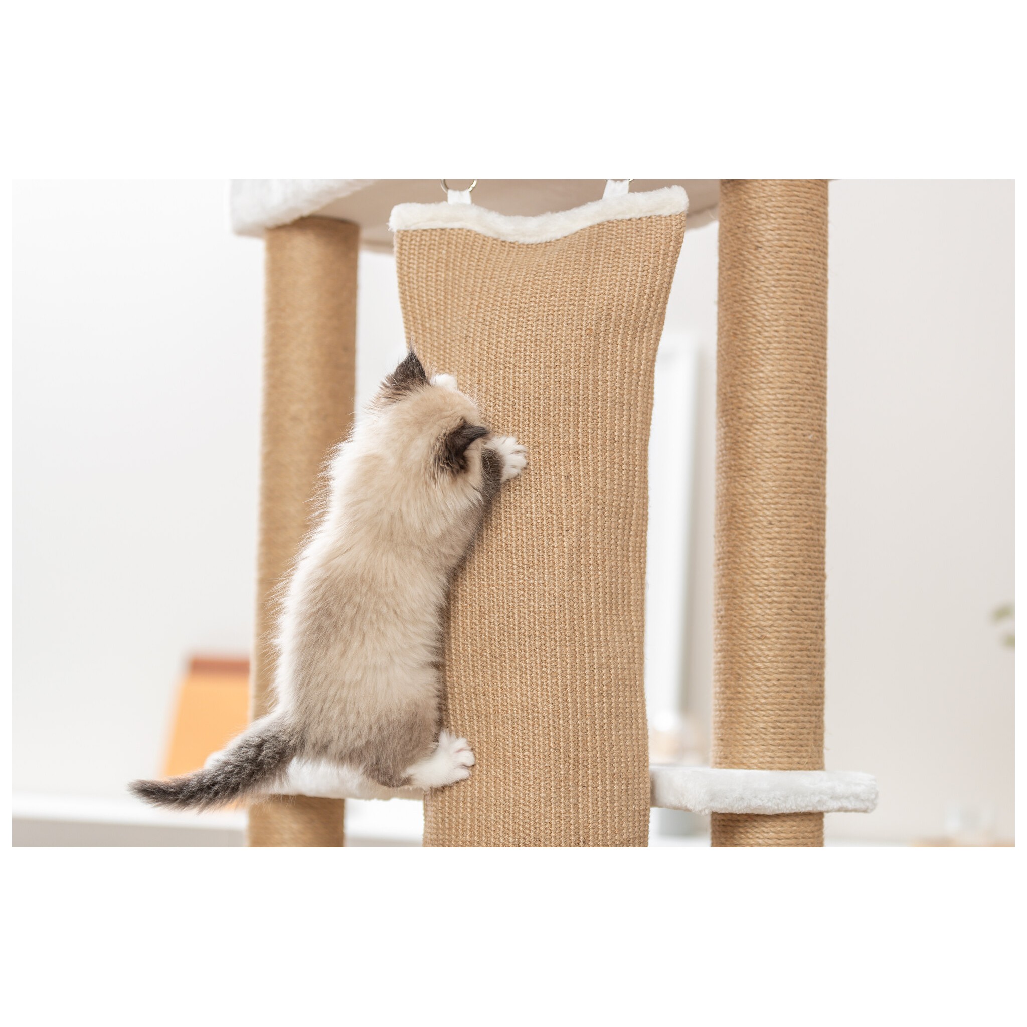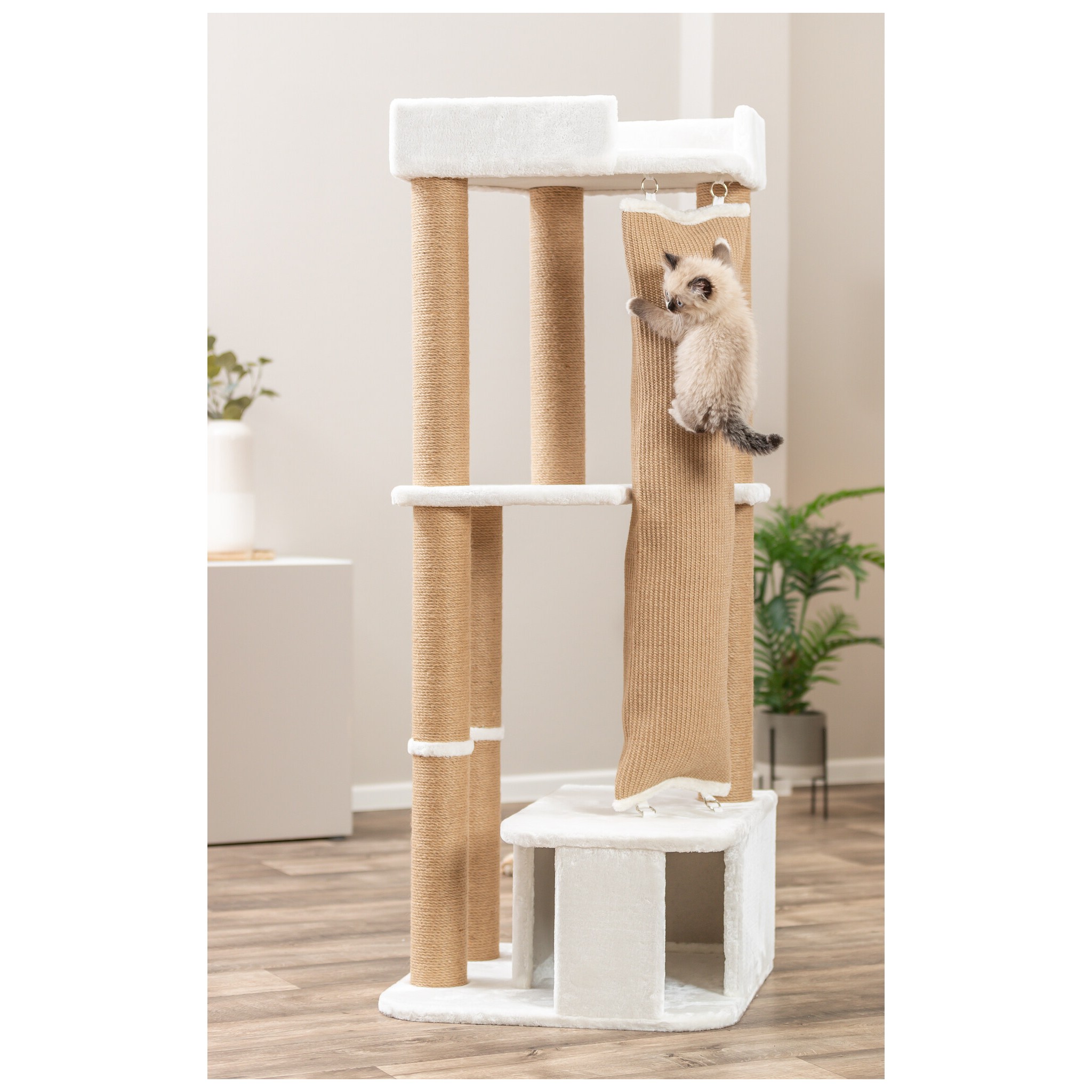 Drapak Active to nie tylko praktyczne wyposażenie domu, ale też elegancki element wystroju wnętrza. Jasna kolorystyka w odcieniu bieli świetnie komponuje się z nowoczesnymi przestrzeniami.