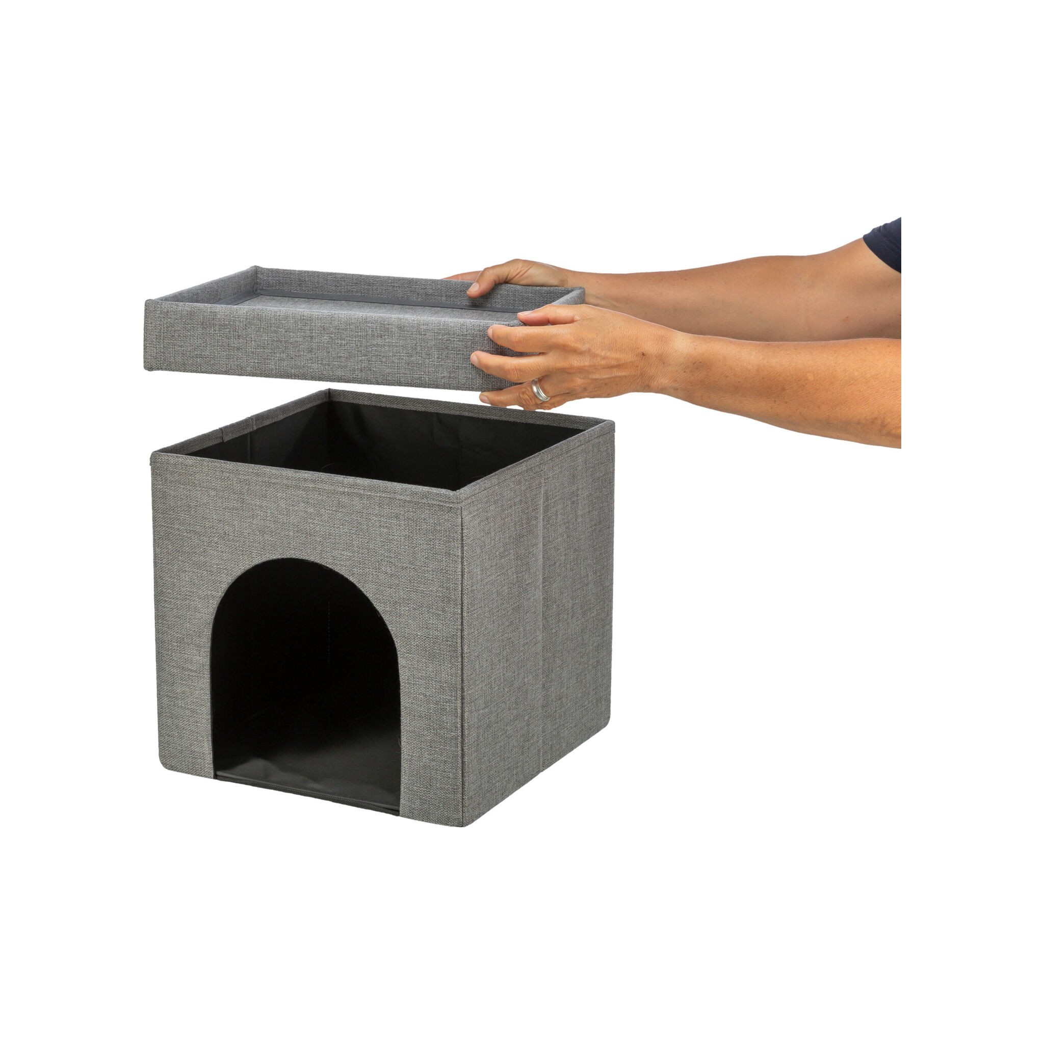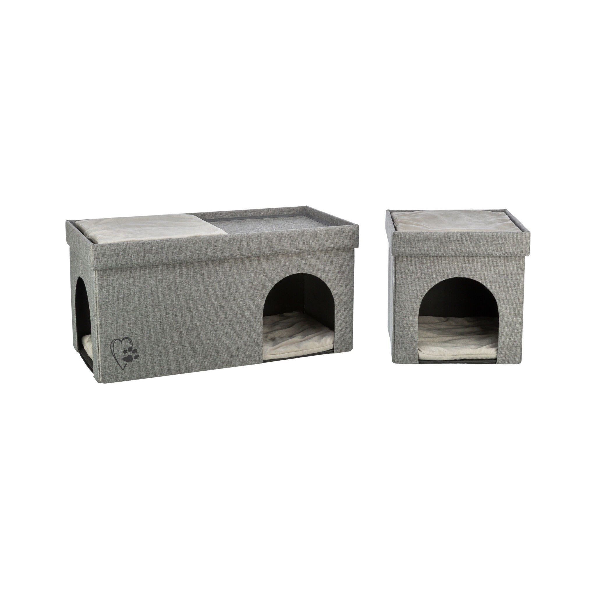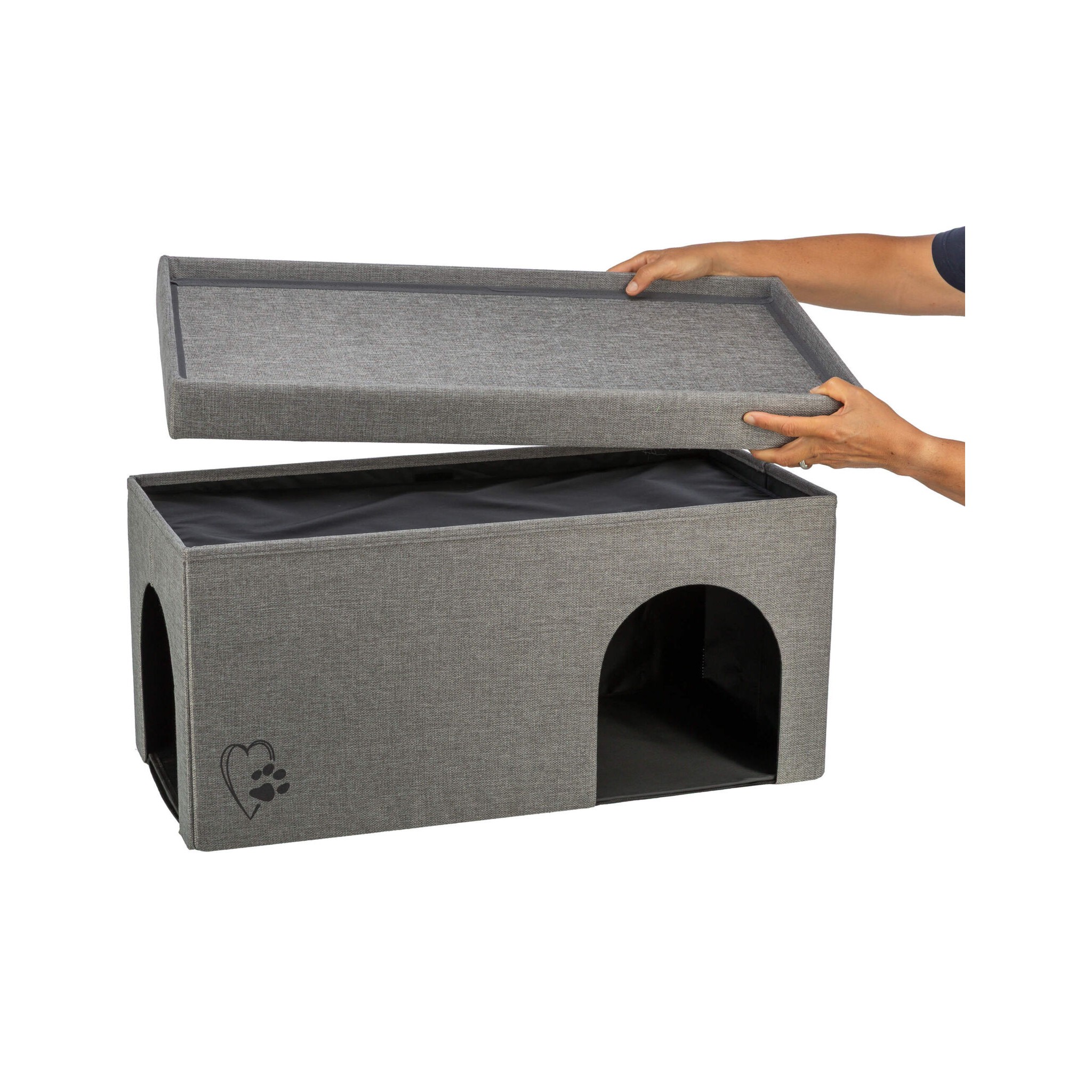 Legowisko zamknięte Kimy w wersji SOFT Edition to komfortowe i funkcjonalne miejsce do odpoczynku dla psa. Wykonane z wysokiej jakości tkaniny i poliestru, jest obicie odporne na codzienne użytkowanie. Legowisko jest składane, co ułatwia jego przechowywanie i transport. Konstrukcja opiera się na wytrzymałych płytach MDF oraz drewnie z certyfikatem FSC® pochodzącym z odpowiedzialnych źródeł. W komplecie znajduje się miękka poduszka z pluszowym poszyciem i wypełnieniem z poliestru, pikowana dla większej wygody pupila."
