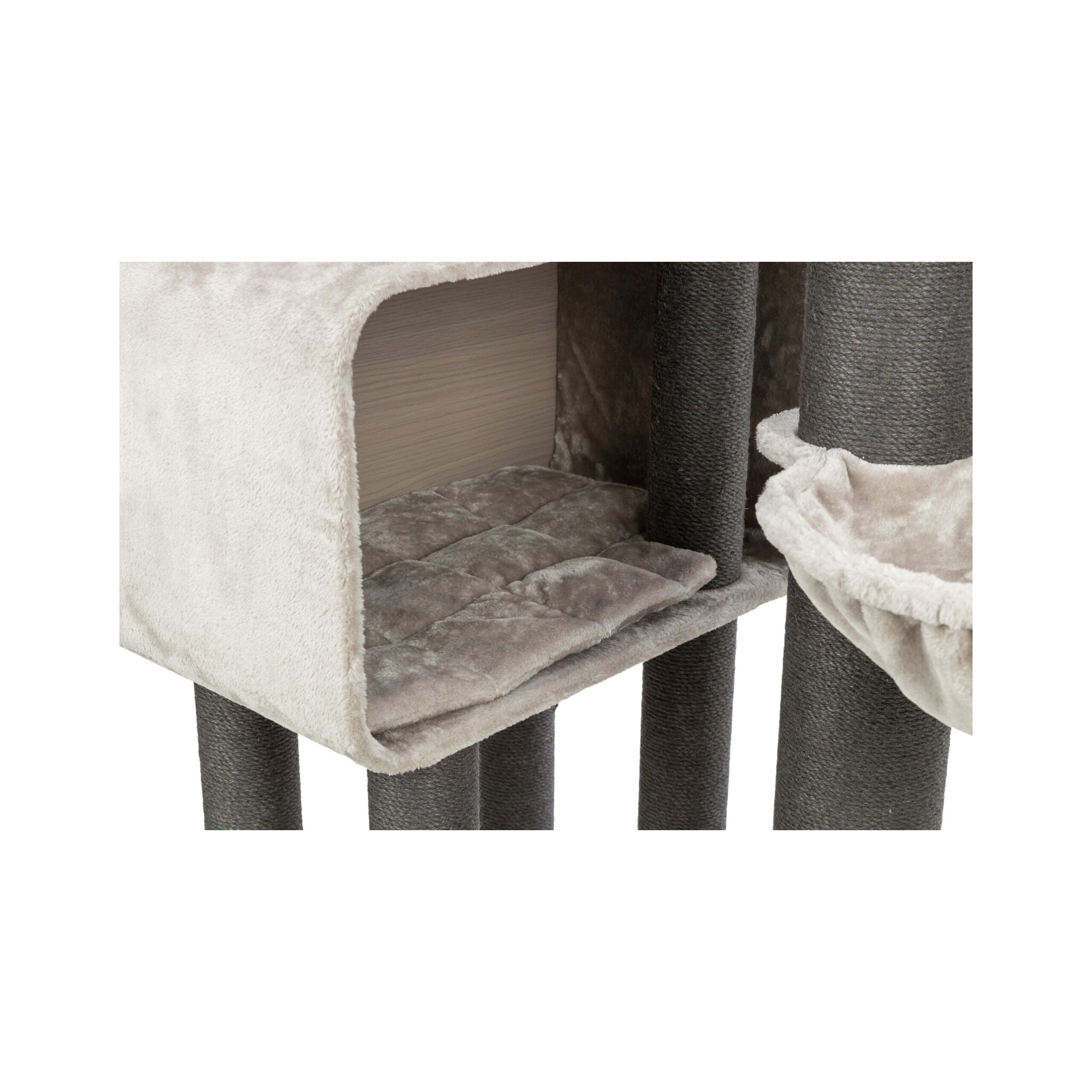 • Wyściełane legowisko pokryte pluszem dla wygody kota.