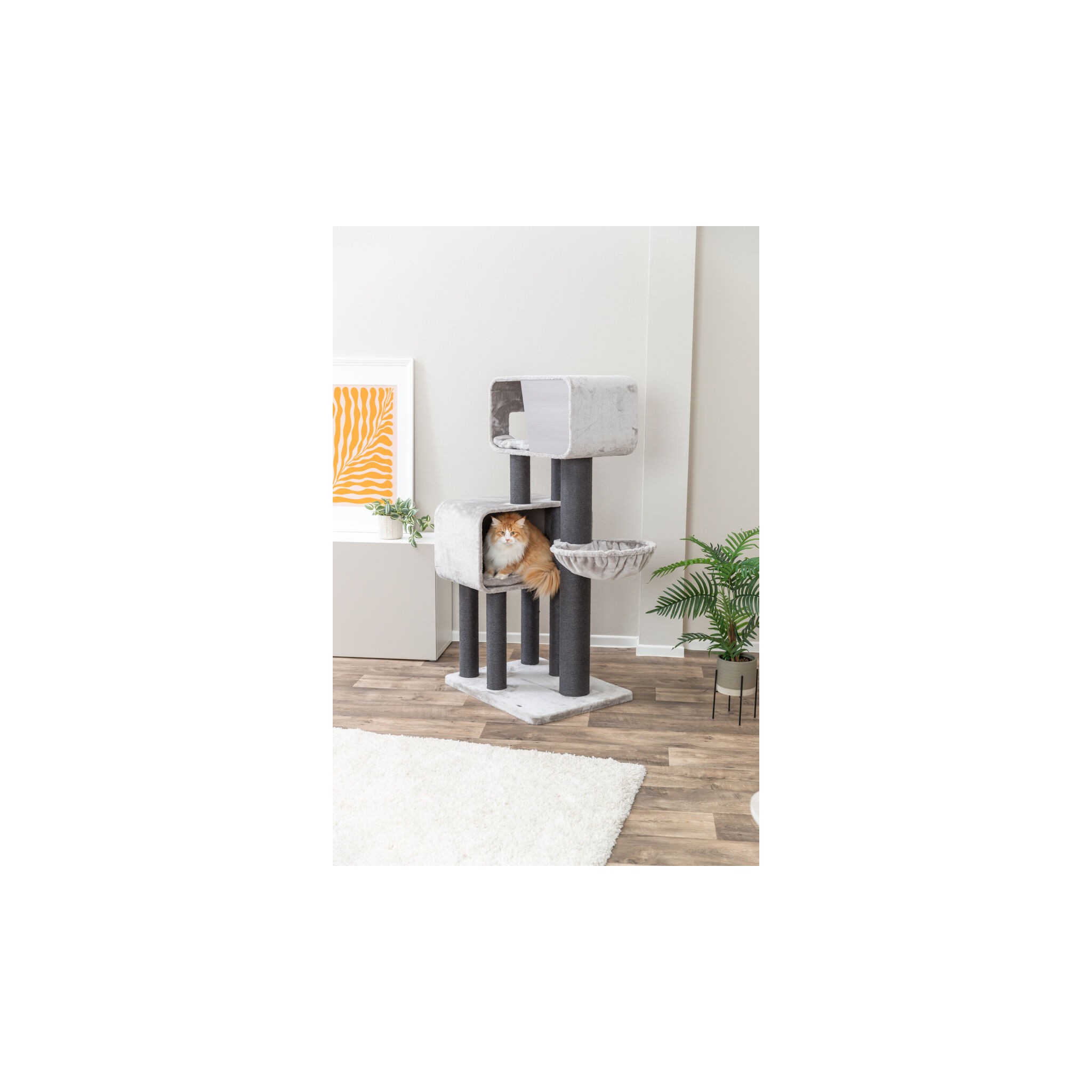 • Stworzony z myślą o dużych kotach, zapewniający odpowiednią przestrzeń do wspinaczki i drapania.