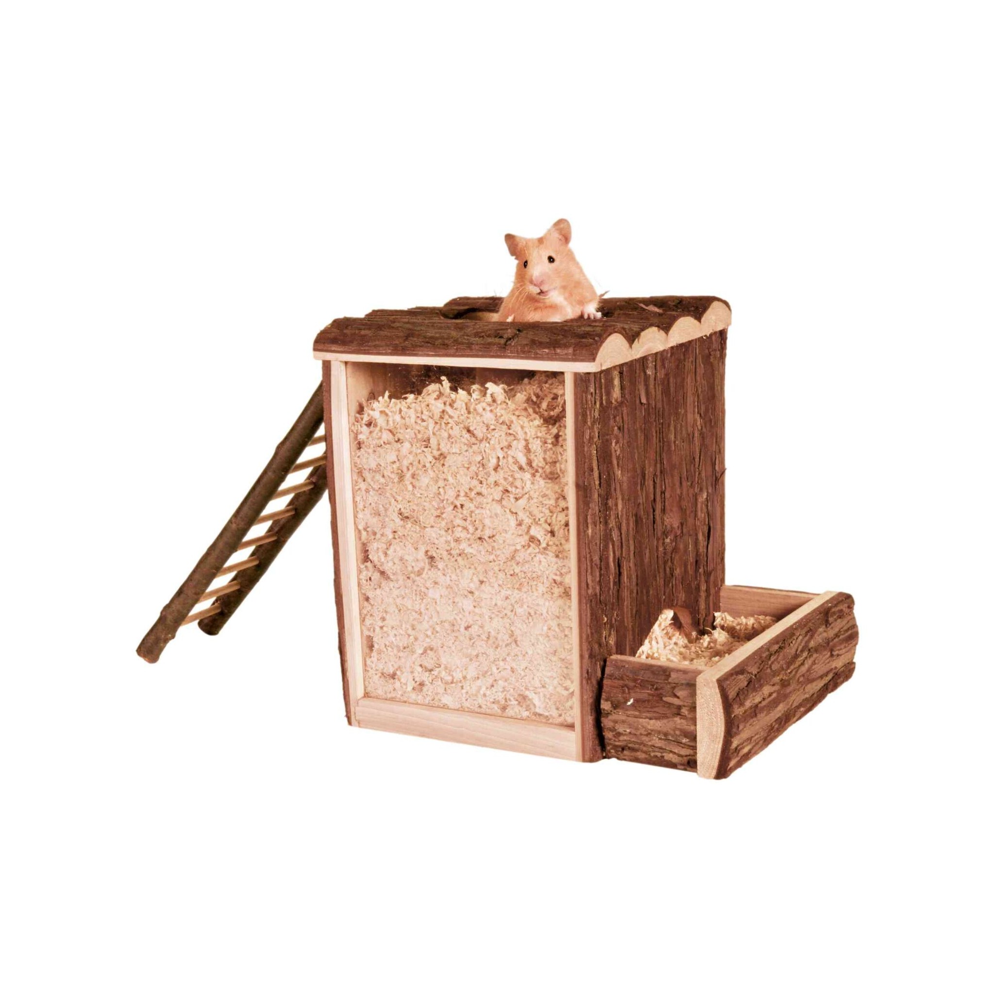 Wieża do zabawy i kopania to doskonała zabawka dla malych zwierząt takich jak króliki czy gryzonie. Posiada dwa wejścia oraz obrzeże zapobiegające wyrzucaniu trocin. Dodatkowo wyposażona jest w akrylową szybę, która umożliwia obserwowanie zwierząt, oraz kory, co sprawia, że jest atrakcyjna dla zwierzaków.