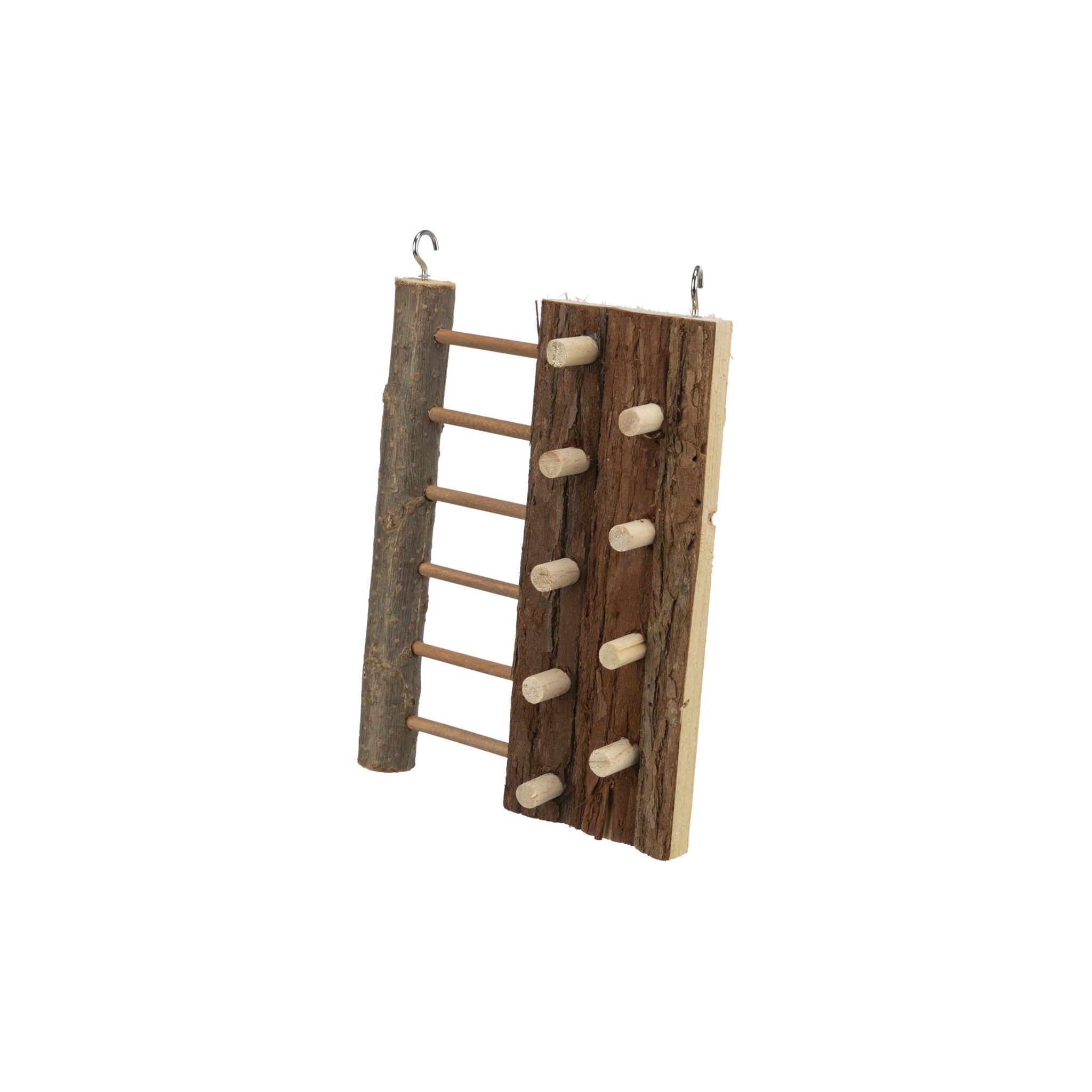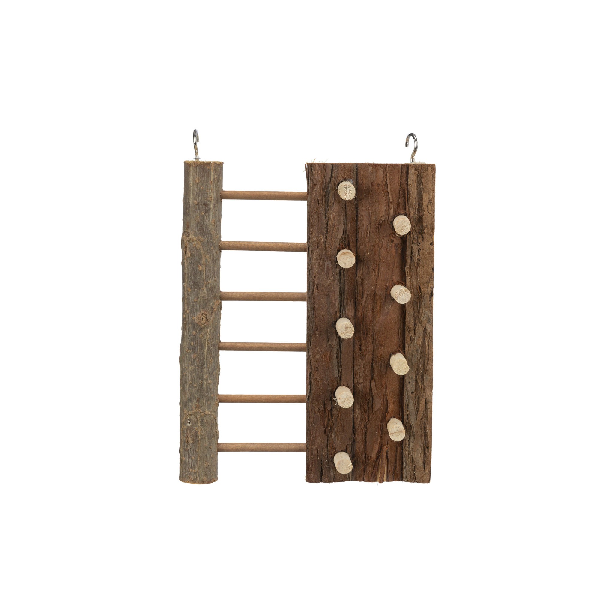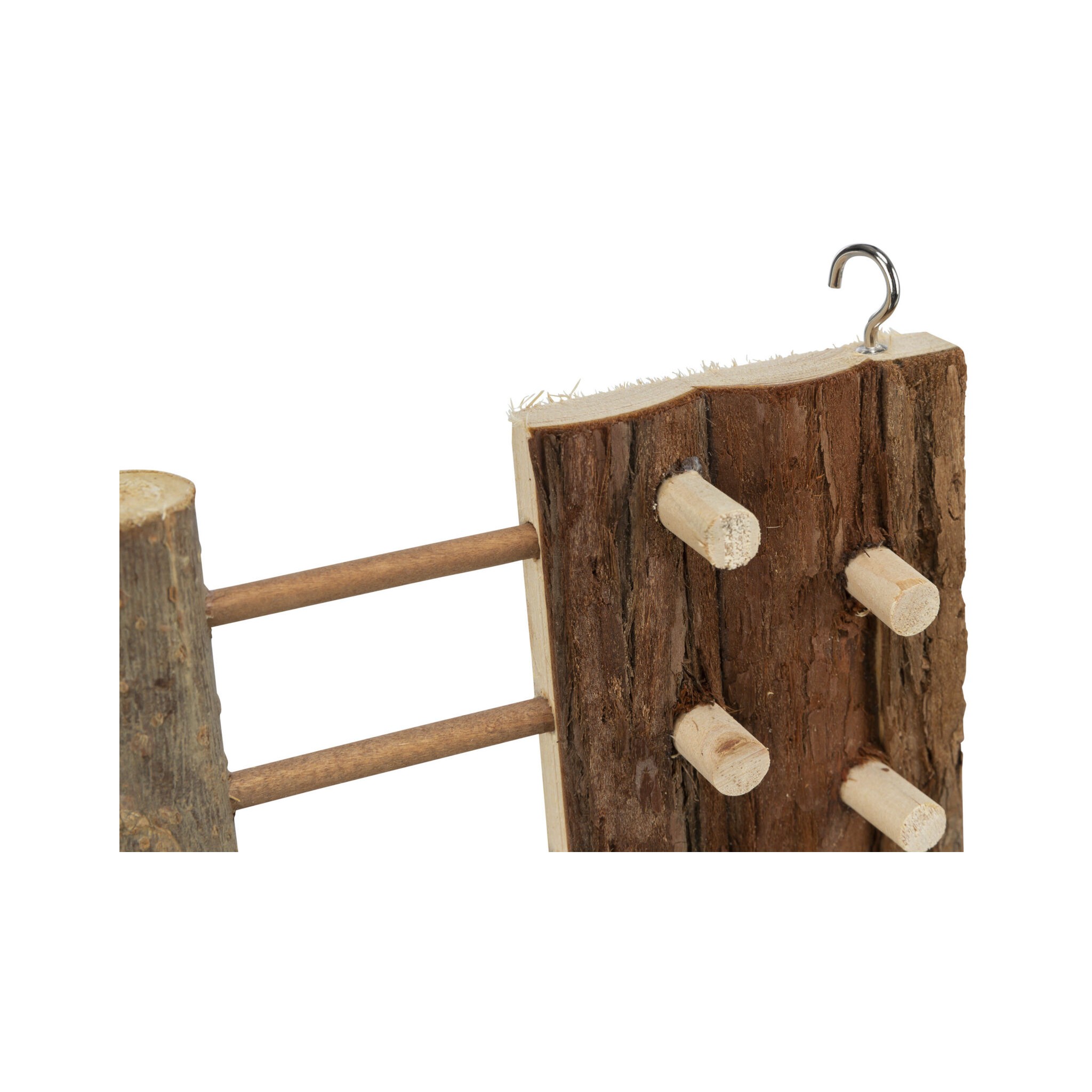 Ścianka wspinaczkowa to idealna zabawka dla małych zwierząt takich jak króliki czy gryzonie. Zawieszana konstrukcja z kory pozwala zwierzętom na aktywne wspinanie się, co sprzyja ich zdrowiu i dobrej kondycji. Materiały użyte do produkcji są bezpieczne dla zwierząt - drewno miękkie bez kanalików żywicznych oraz nietoksyczny klej.