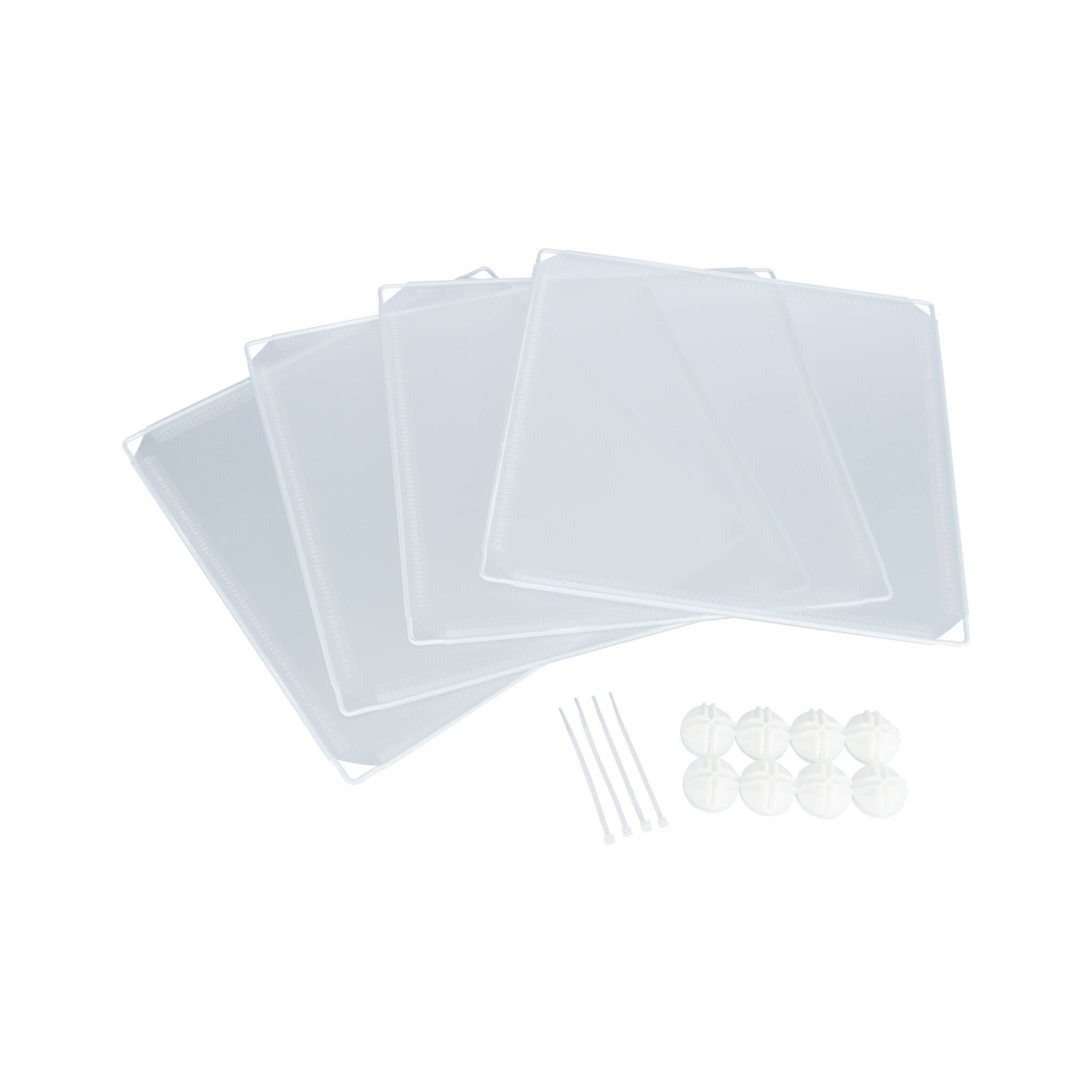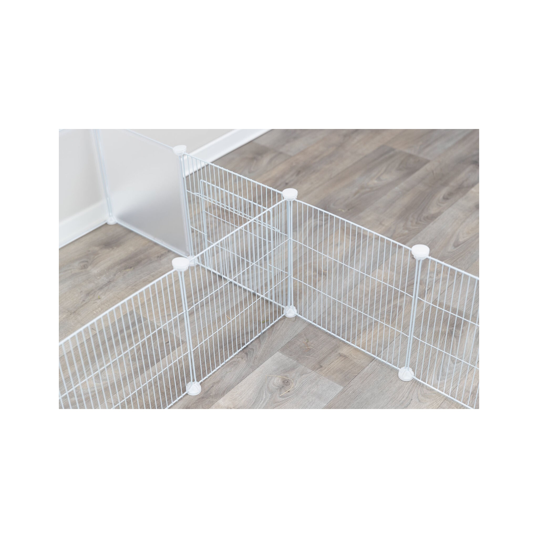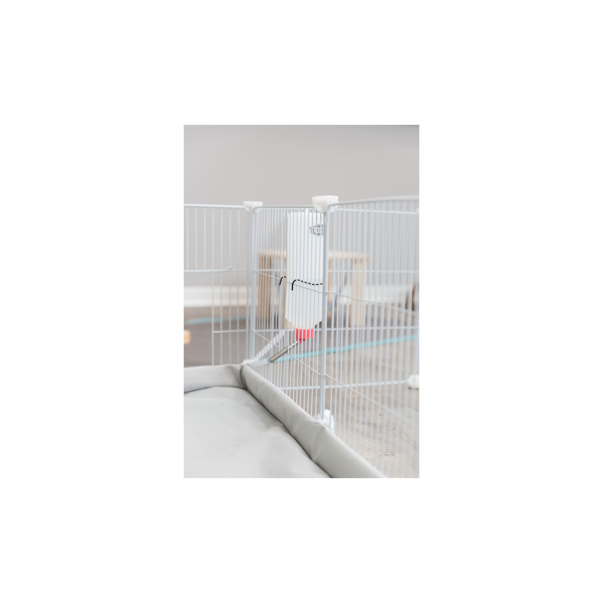 Elementy przedłużający do wybiegu domowego są idealne dla właścicieli królików i gryzoni, którzy chcą stworzyć dodatkową przestrzeń dla swoich pupili. Zestaw składa się z 4 elementów o wymiarach 35 × 35 cm wraz z akcesoriami montażowymi, co pozwala na elastyczne dopasowanie do istniejącego wybiegu. Elementy można montować i rozszerzać na różne sposoby, zapewniając różnorodne konfiguracje dla zwierząt. Co ważne, produkt jest zgodny z ustawą o ochronie zwierząt - §18 (AT), co stanowi dodatkowe zabezpieczenie dla zwierząt.