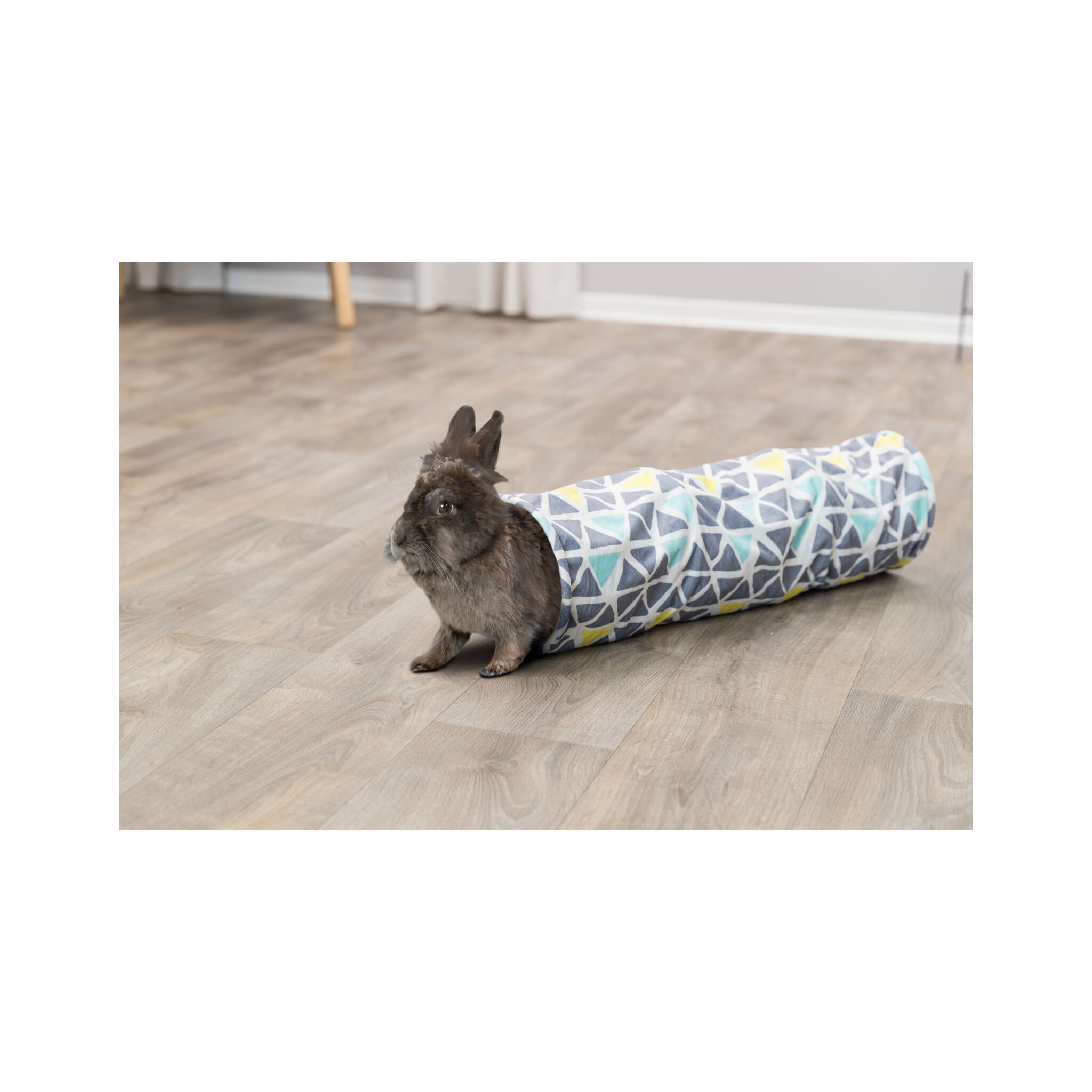Przytulny tunel Sunny to idealne schronienie dla krolików i gryzoni. Dzięki metalowym pierścieniom zapewnia stabilność wymiarową, co jest istotne dla zwierząt. Tunel wykonany jest z miękkiego pluszu (poliestru), co gwarantuje wygodę i ciepło dla zwierzaka. Doskonale sprawdzi się jako miejsce do odpoczynku i zabaw.