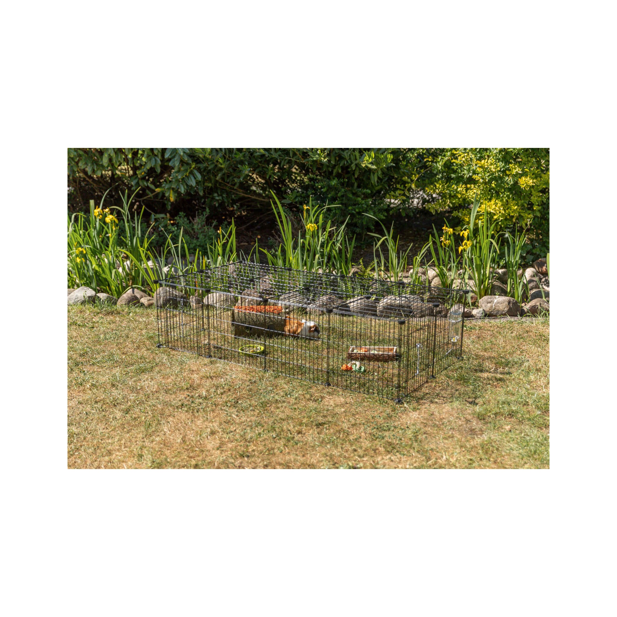 Wybieg zewnętrzny przenośny z pokrywą górną, dla gryzoni, prostokątna, czarna, metal, 152 × 38 × 72 cm
