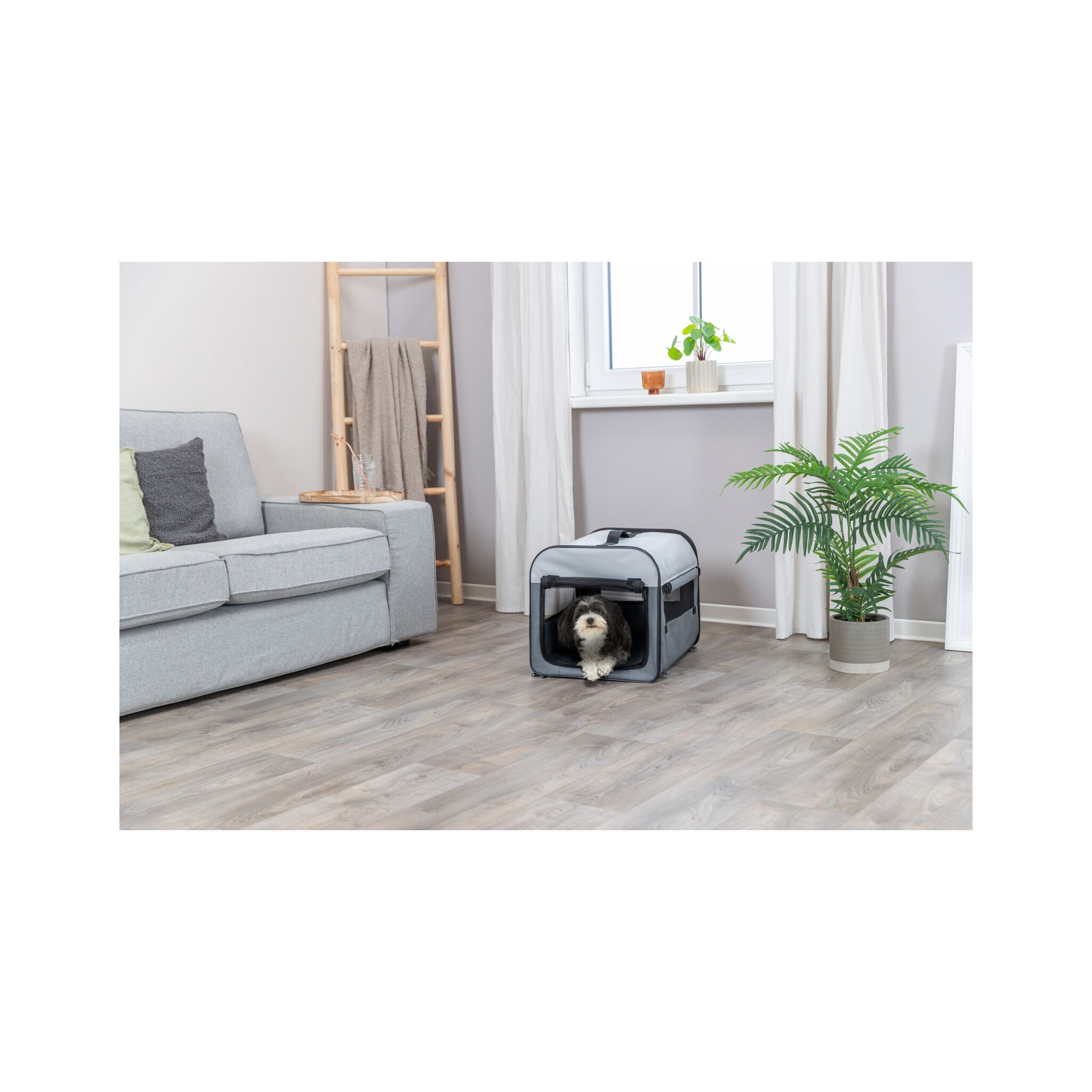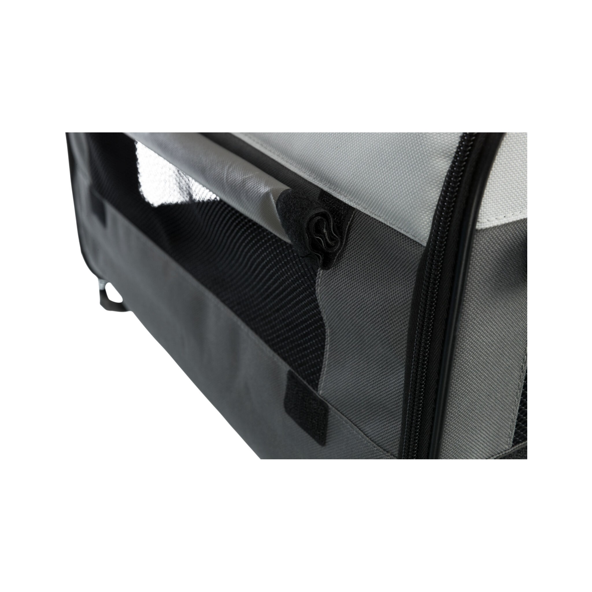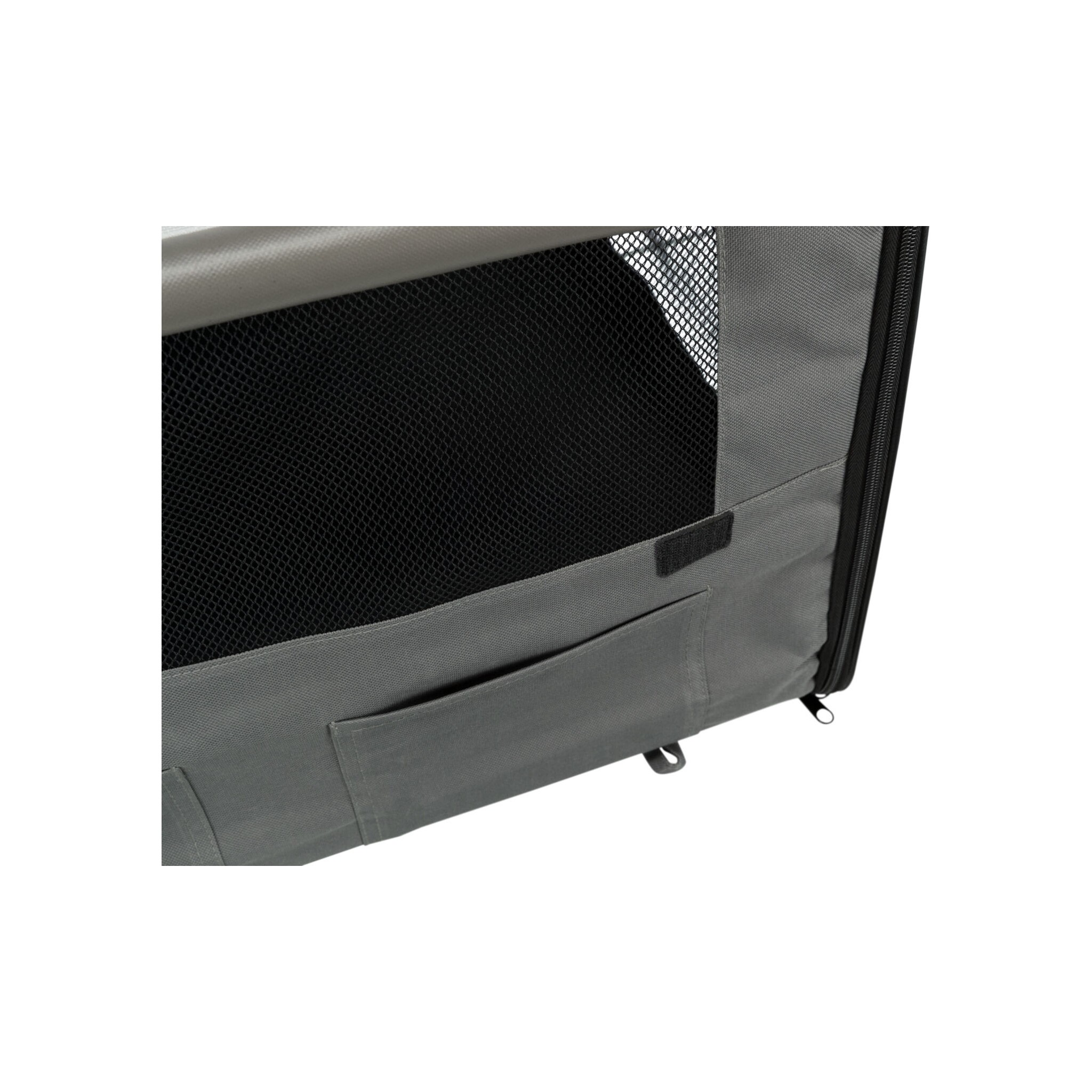 Klatka dla psa Basic to idealne rozwiązanie do krótkotrwałego ulokowania zwierząt w domu. Wyposażona w wstawki siatkowe, które mogą być przykryte, zewnętrzne kieszonki oraz obicie flauszem, zapewnia komfort i bezpieczeństwo pupila. Dodatkowe klapy i sleje umożliwiają użytkowanie na zewnątrz, a dołączona torba ułatwia transport. Dostępna w rozmiarach S oraz M. Wykonana z wysokiej jakości poliestru.