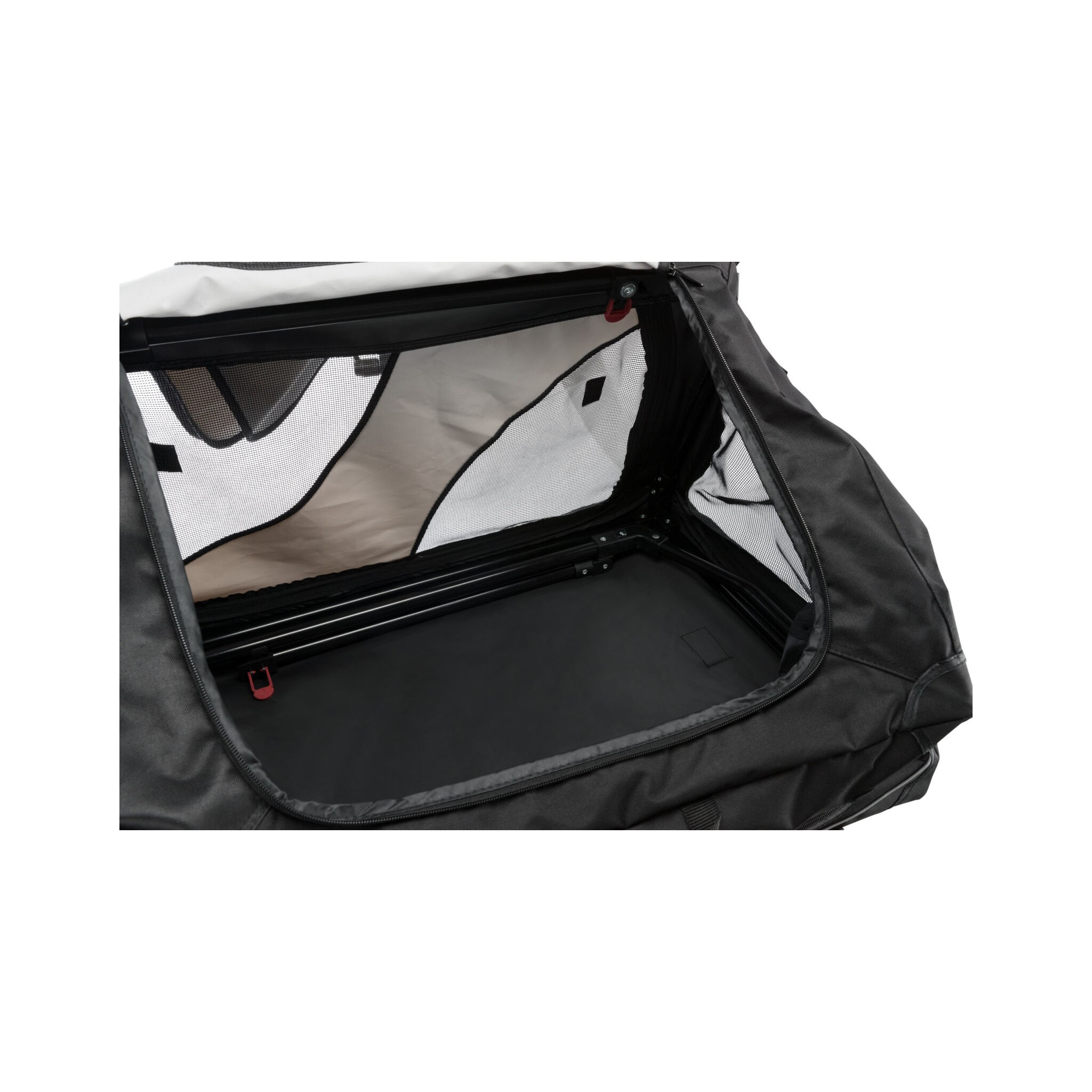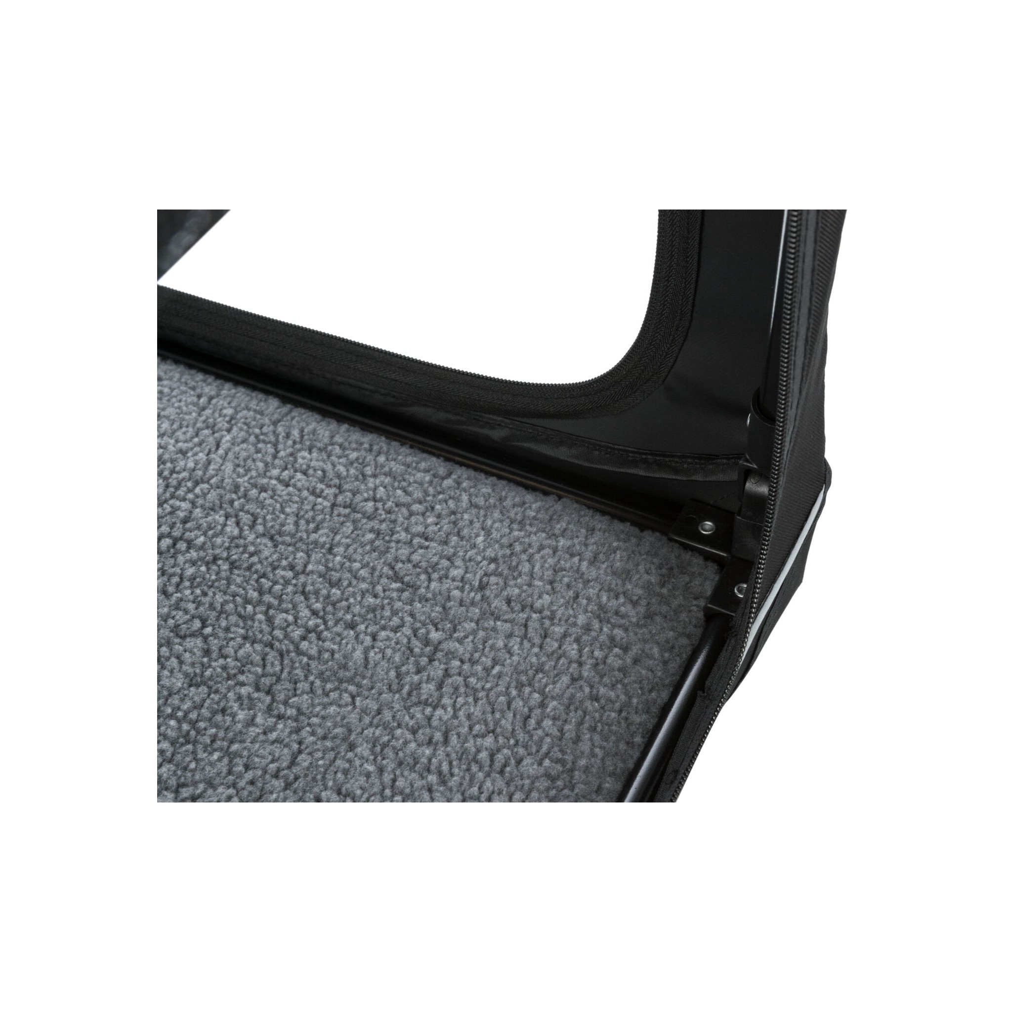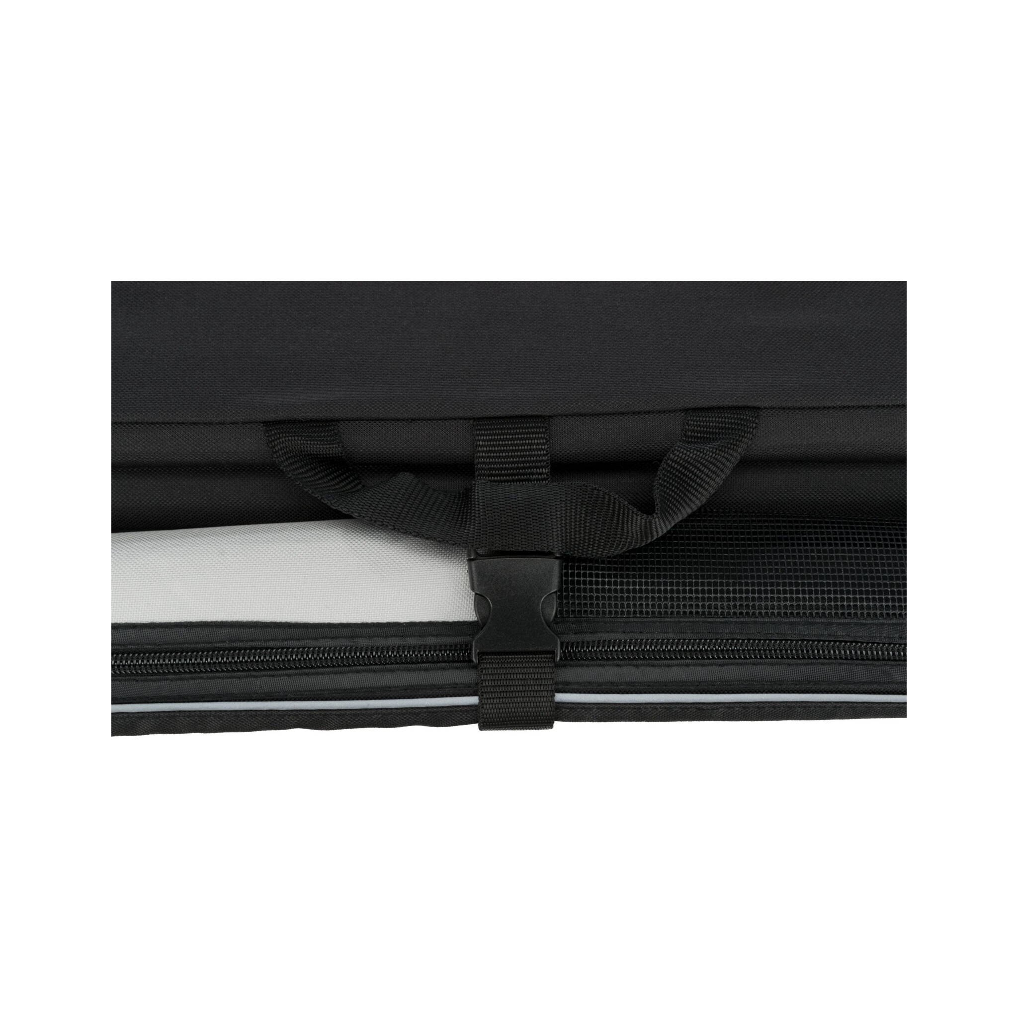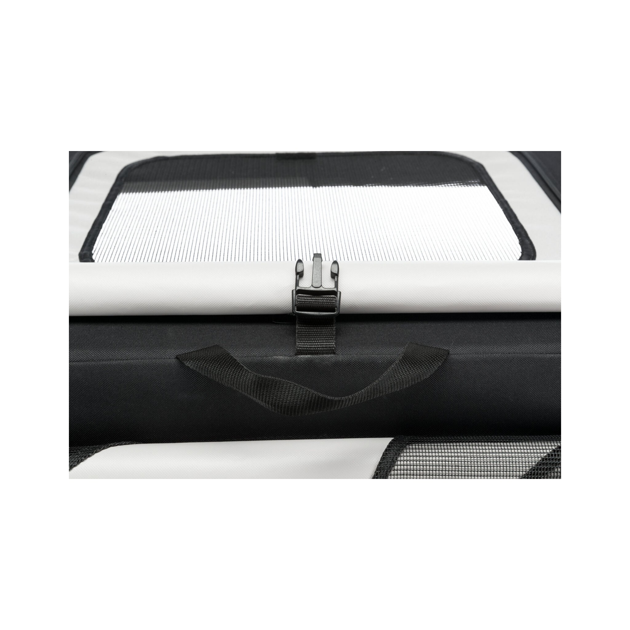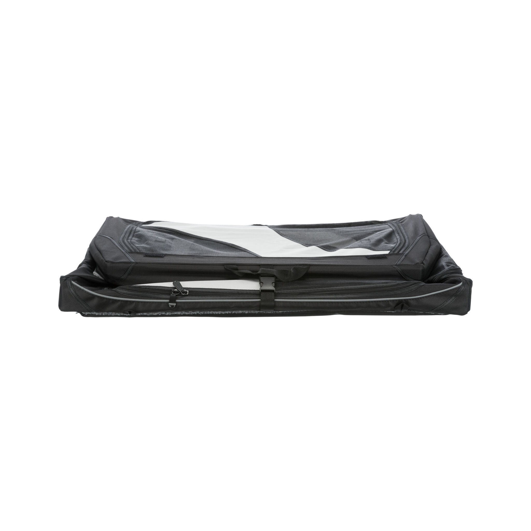 Klatka dla psa Vario to stabilna metalowa rama z mechanizmem szybkiego składania, idealna do użytku na zewnątrz dzięki dodatkowym klapom i sledziom. Posiada otwarcie z 3 stron oraz górną wstawkę siatkową, którą można zakryć. Dodatkowo wyposażona jest w zewnętrzne kieszenie, rzepy zapobiegające przesuwaniu się oraz ochronę zderzaka. W zestawie znajduje się również torba do transportu oraz mata do leżenia z imitacji futra jagnięcego (poliester). Kolor: czarny/szary.