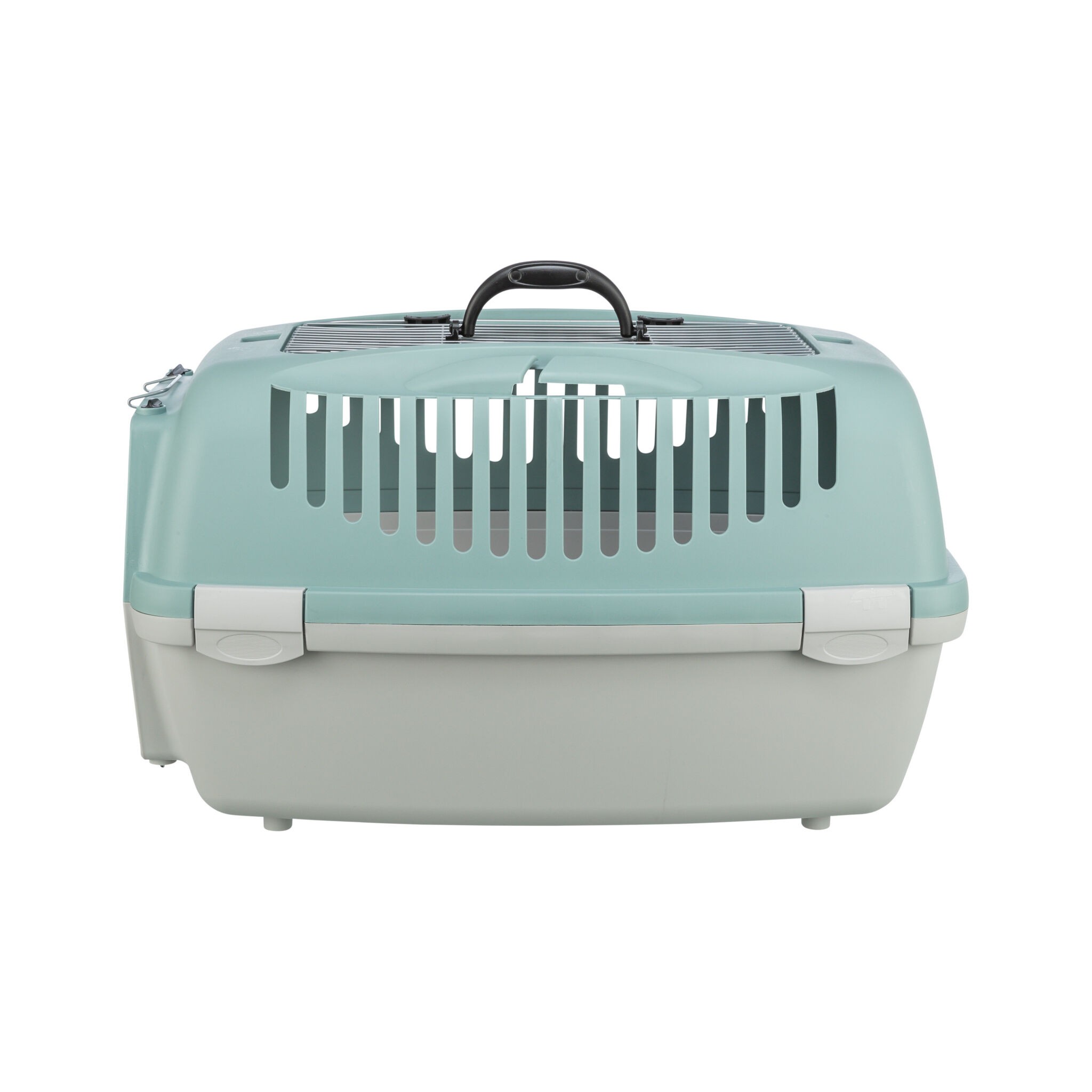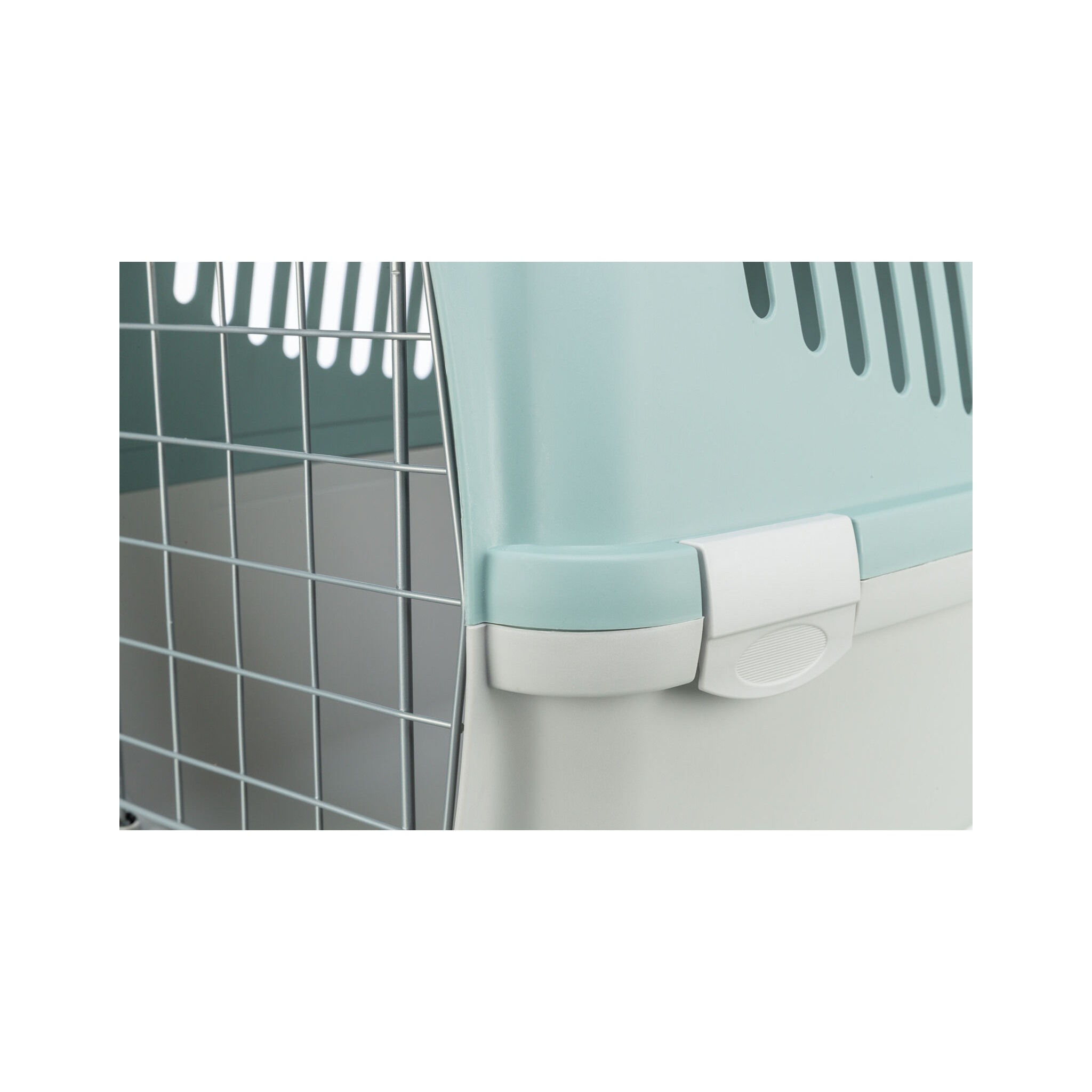Transporter Capri 3 Open Top to wygodny i funkcjonalny transporter dla psów, zapewniający bezpieczny transport zwierząt podczas podróży. Posiada metalowe okratowanie na górze oraz metalowe drzwi i uchwyt, co gwarantuje stabilność i trwałość. Otwiera się zarówno z przodu, jak i z góry, ułatwiając wkładanie i wyciąganie zwierząt. Wykonany z trwałego plastiku, łatwego w czyszczeniu i pielęgnacji.