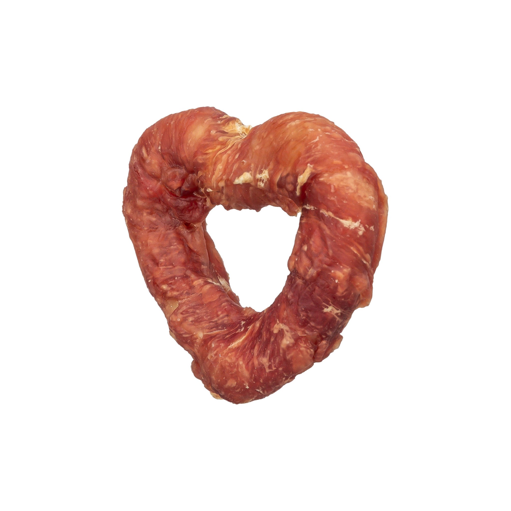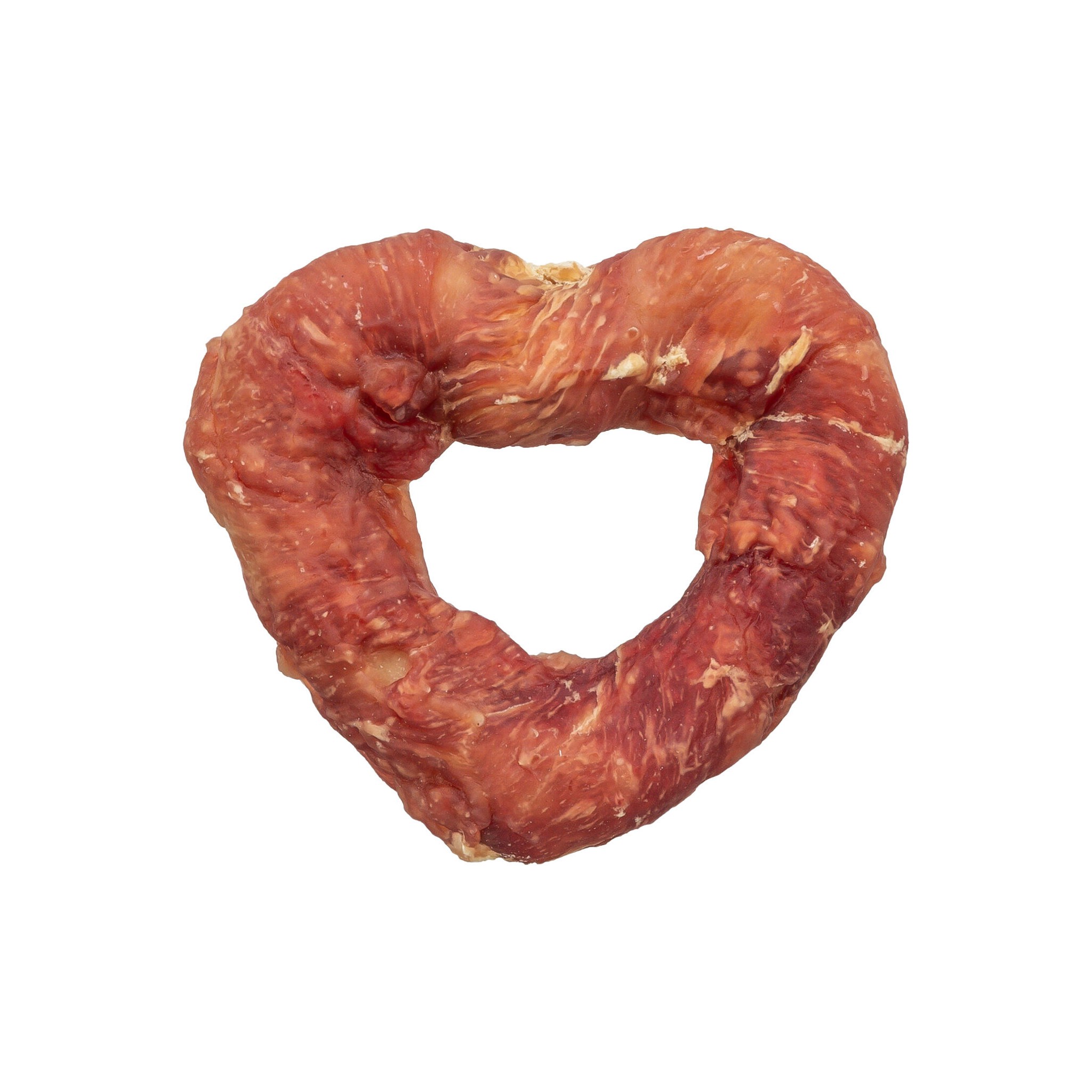 Produkt Denta Fun Heart z piersią kaczki oparty jest na bazie skóry bydlęcej. To atrakcyjny przysmak dla psa, idealny do gryzienia i dbania o higienę jamy ustnej. Pakowany hurtowo, co zapewnia dogodne ilości do codziennego użytku.