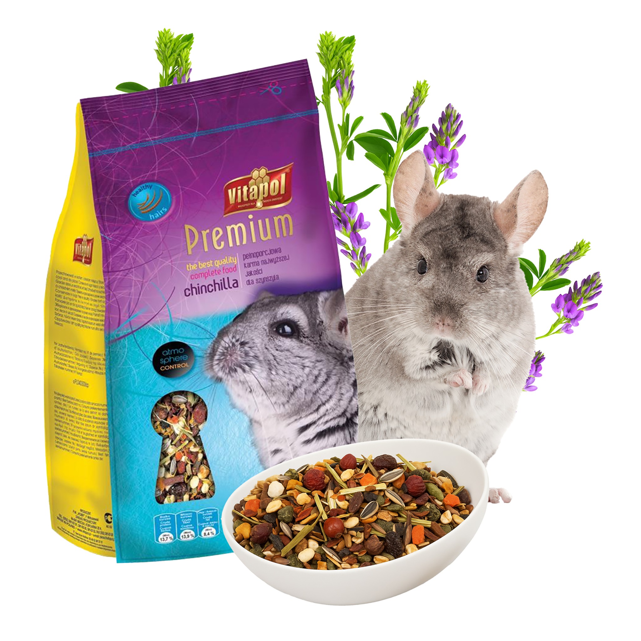 Pełnoporcjowa mieszanka dla szynszyli, odpowiednio zbilansowana,