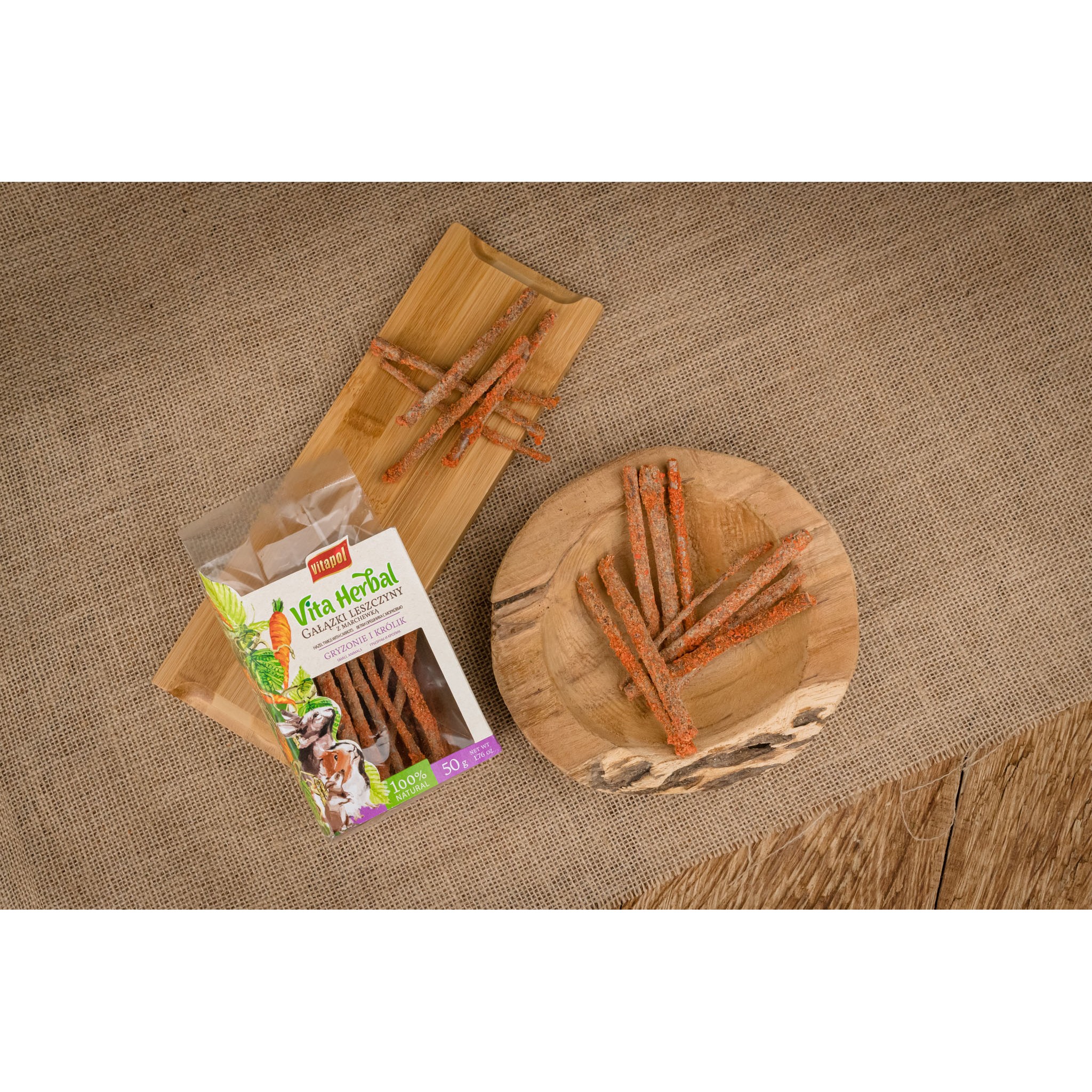 Mieszanka paszowa uzupełniająca. Skład: pędy leszczyny suszone, marchew suszona, skrobia. Składniki analityczne: białko surowe (ozn. met. Kjeldahla) min. %, tłuszcz surowy min. 0,01%, włókno surowe max. 11,25%, popiół surowy max. 4,93%, wilgotność max. 12%. Zalecenia dotyczące żywienia: jako przysmak uzupełniający karmę podstawową.