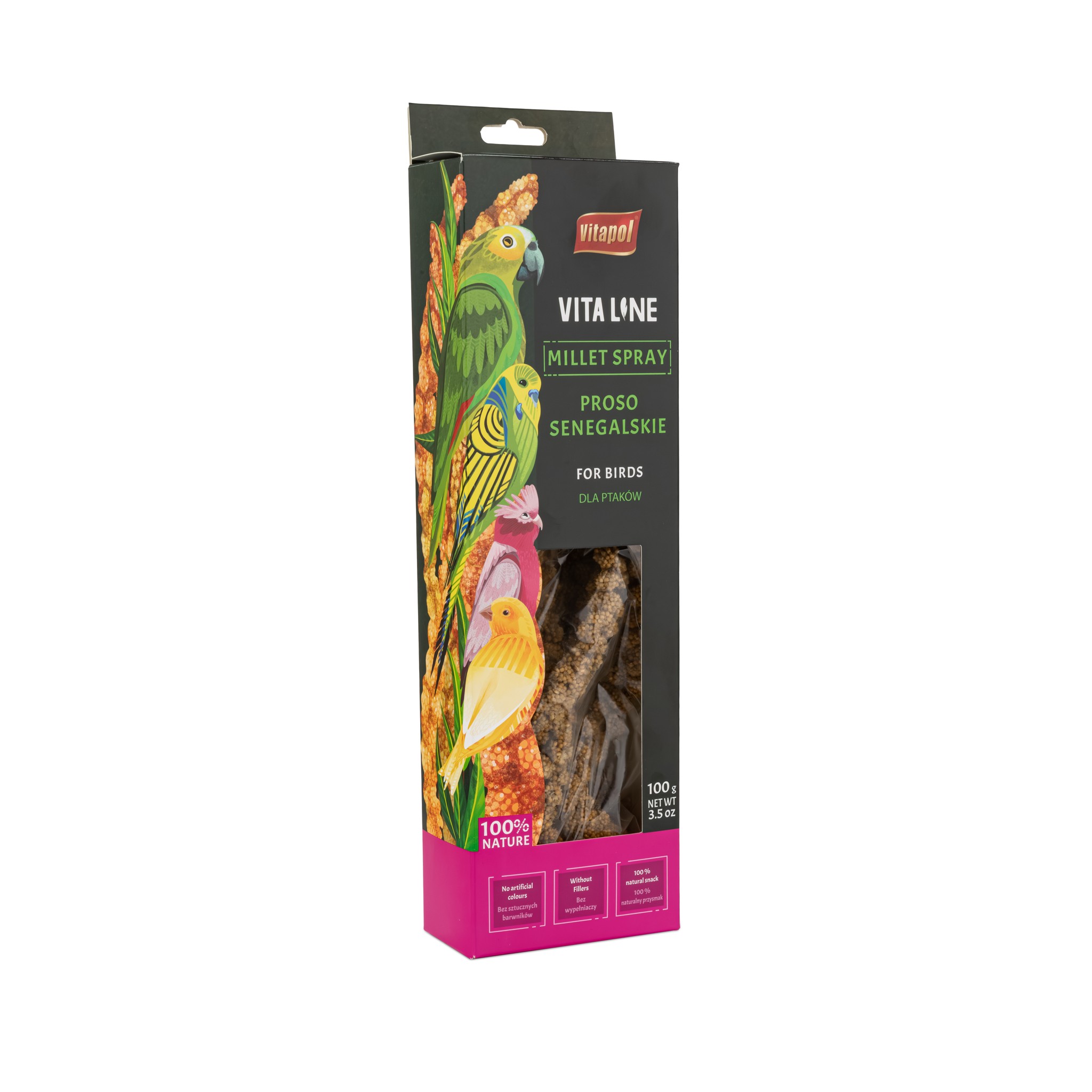 Kłosy prosa senegalskiego stanowiące smakowite uzupełnienie diety papug i innych ptaków. Ziarna zawierają witaminy grupy B, minerały takie jak: magnez, żelazo, jod, rozpuszczalną krzemionkę, oraz nienasycone kwasy tłuszczowe. Takie ziarno jest pożywniejsze, ma więcej witamin i pobudza ptaki do aktywności płciowej.