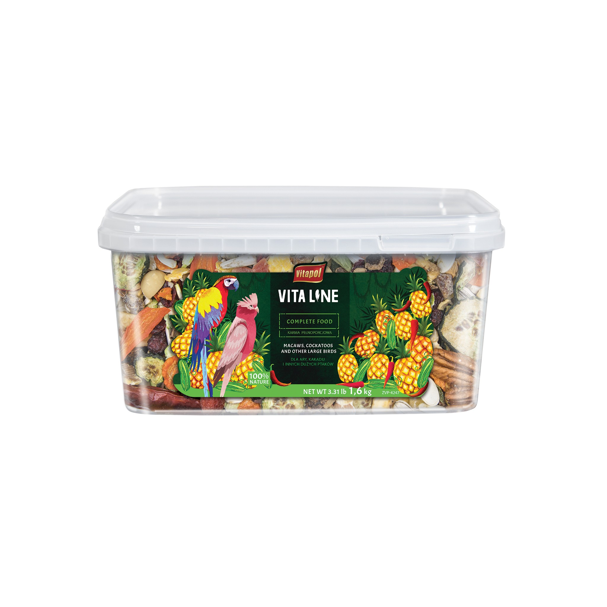 Zadbaj o zdrowie i szczęście swoich dużych papug, takich jak ary, kakadu i inne, dzięki Vitaline karma pełnoporcjowa. Nasza karma została stworzona z myślą o potrzebach największych ptaków ozdobnych, oferując im zbilansowaną i odżywczą dietę na każdy dzień.