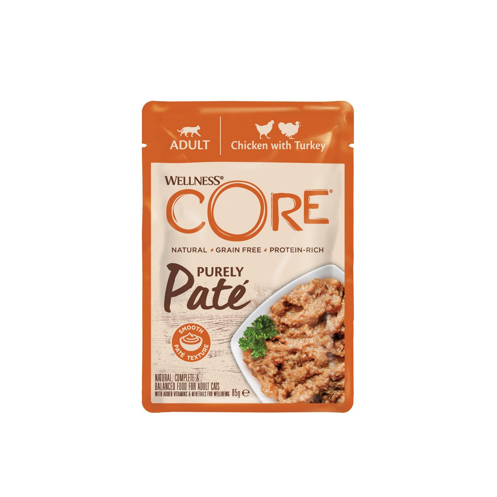Wellness Core Purely Pate Chicken & Turkey to idealny wybór dla kotów, które potrzebują zdrowej, zbilansowanej diety opartej na naturalnych składnikach. Zapewnij swojemu kotu smakowite i odżywcze posiłki, które wspierają jego zdrowie każdego dnia!